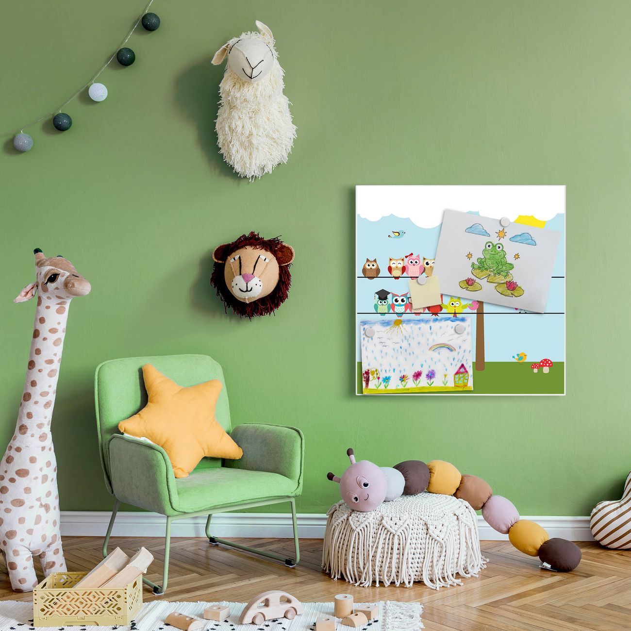 Die banjado Design Magnettafel mit Motiv Motiv Da Wären Wir bringt Ordnung in Ihr Zettelchaos. Fotos, Termine, Notizen oder Rezepte lassen Sich hier stilvoll mit Magneten ordnen, Sie behalten alles im Blick. An der Pinnwand halten alle handelsüblichen Magnete. Mit dieser Pinnwand aus Metall haben Sie auch ohne Notizen und Magnete ein schönes Dekoelement. Das Quadratische Format bietet Ihnen ausreichend Platz um alle wichtigen Informationen im Blick zu behalten.