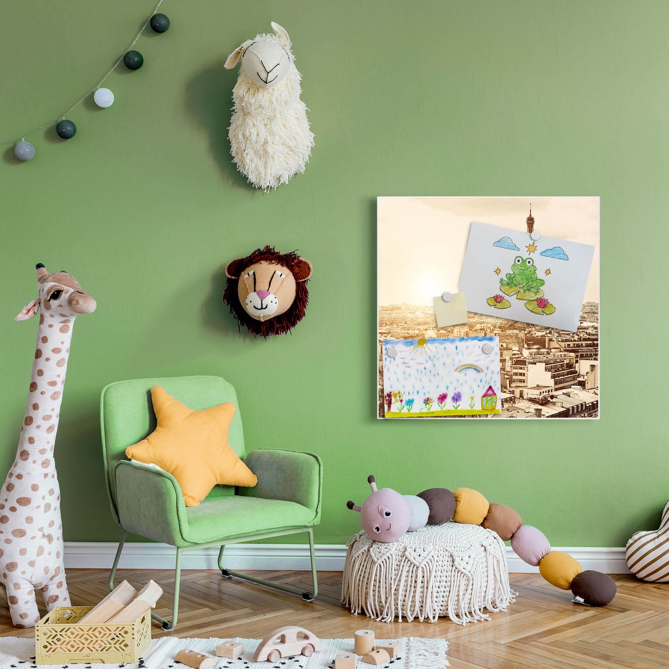 Die banjado Design Magnettafel mit Motiv Motiv Dächer Von Paris bringt Ordnung in Ihr Zettelchaos. Fotos, Termine, Notizen oder Rezepte lassen Sich hier stilvoll mit Magneten ordnen, Sie behalten alles im Blick. An der Pinnwand halten alle handelsüblichen Magnete. Mit dieser Pinnwand aus Metall haben Sie auch ohne Notizen und Magnete ein schönes Dekoelement. Das Quadratische Format bietet Ihnen ausreichend Platz um alle wichtigen Informationen im Blick zu behalten.