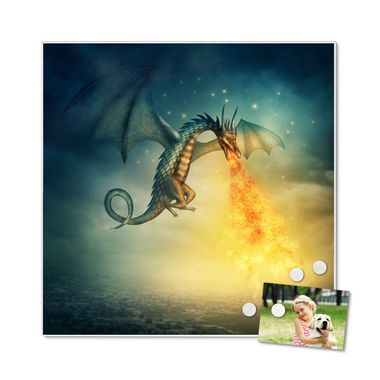 Stahl Magnettafel 50x50cm Drachen