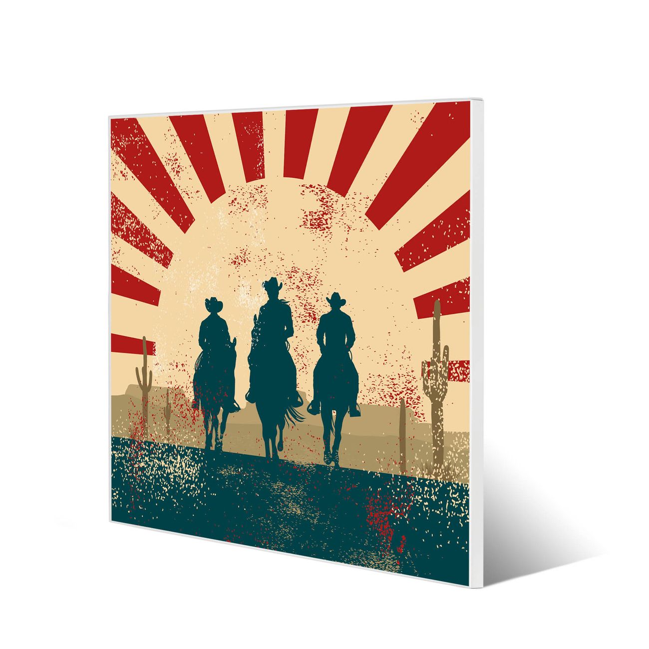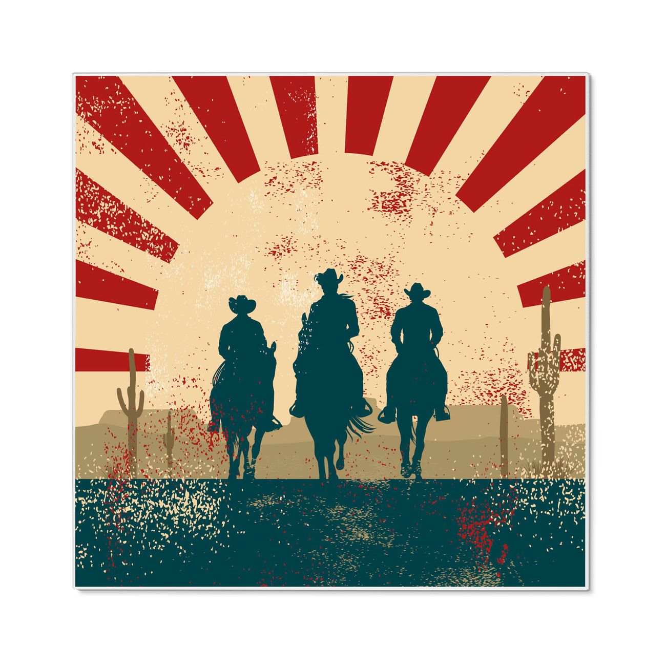 Stahl Magnettafel 50x50cm Drei Cowboys