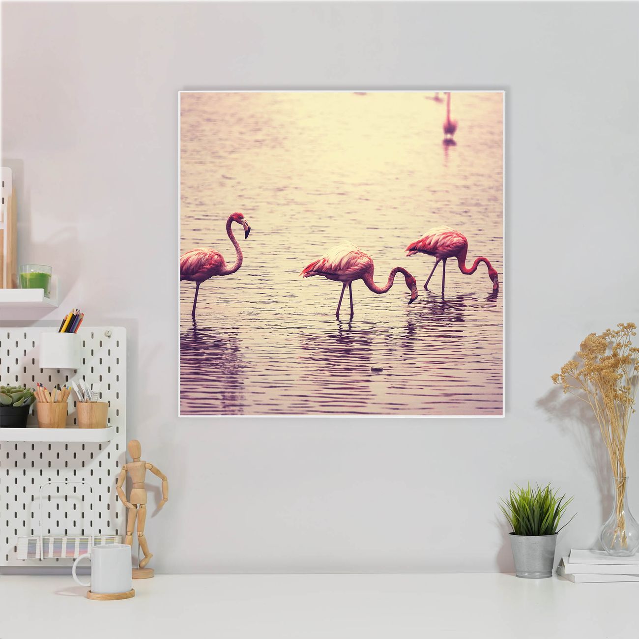 Stahl Magnettafel 50x50cm Drei Flamnigos