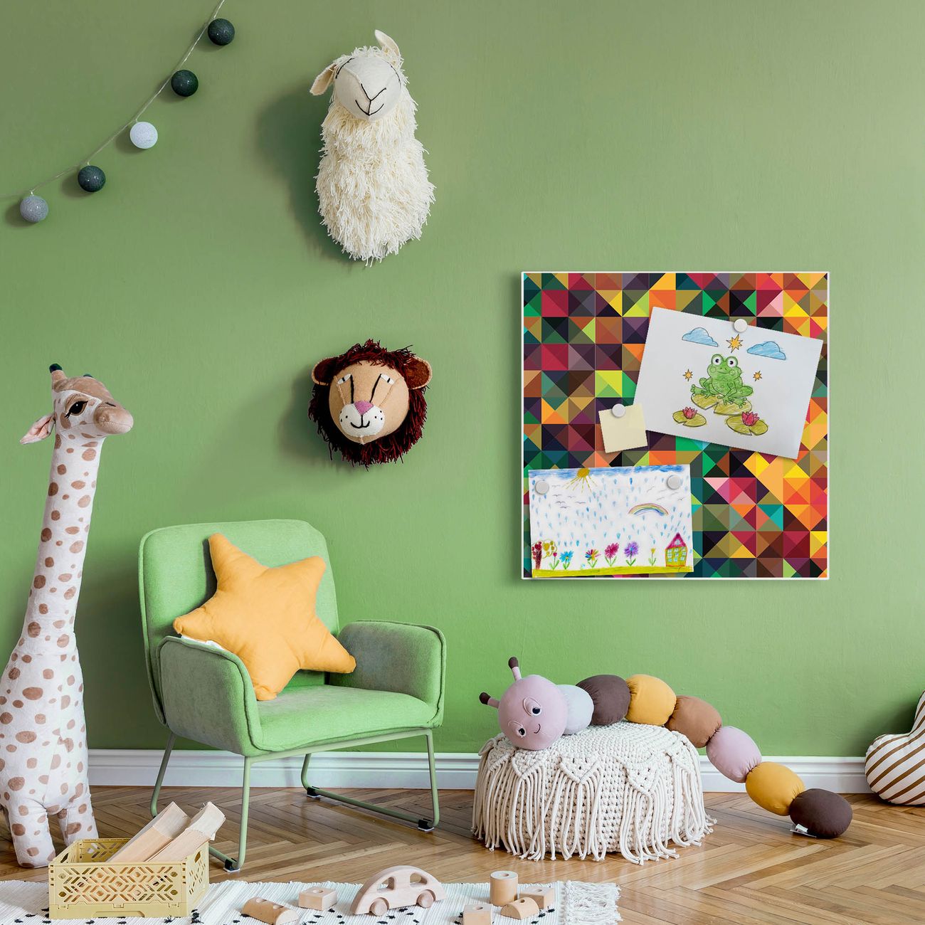Die banjado Design Magnettafel mit Motiv Motiv Dunkles Kaleidoskop bringt Ordnung in Ihr Zettelchaos. Fotos, Termine, Notizen oder Rezepte lassen Sich hier stilvoll mit Magneten ordnen, Sie behalten alles im Blick. An der Pinnwand halten alle handelsüblichen Magnete. Mit dieser Pinnwand aus Metall haben Sie auch ohne Notizen und Magnete ein schönes Dekoelement. Das Quadratische Format bietet Ihnen ausreichend Platz um alle wichtigen Informationen im Blick zu behalten.