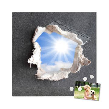 Die banjado Design Magnettafel mit Motiv Motiv Durchblick bringt Ordnung in Ihr Zettelchaos. Fotos, Termine, Notizen oder Rezepte lassen Sich hier stilvoll mit Magneten ordnen, Sie behalten alles im Blick. An der Pinnwand halten alle handelsüblichen Magnete. Mit dieser Pinnwand aus Metall haben Sie auch ohne Notizen und Magnete ein schönes Dekoelement. Das Quadratische Format bietet Ihnen ausreichend Platz um alle wichtigen Informationen im Blick zu behalten.