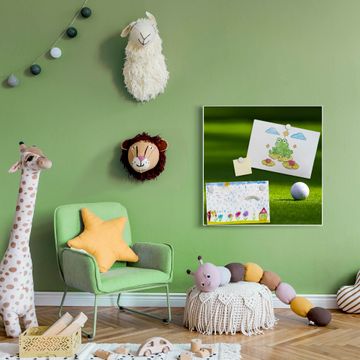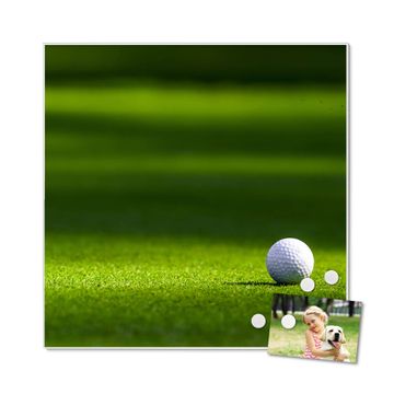 Die banjado Design Magnettafel mit Motiv Motiv Einsamer Golfball bringt Ordnung in Ihr Zettelchaos. Fotos, Termine, Notizen oder Rezepte lassen Sich hier stilvoll mit Magneten ordnen, Sie behalten alles im Blick. An der Pinnwand halten alle handelsüblichen Magnete. Mit dieser Pinnwand aus Metall haben Sie auch ohne Notizen und Magnete ein schönes Dekoelement. Das Quadratische Format bietet Ihnen ausreichend Platz um alle wichtigen Informationen im Blick zu behalten.