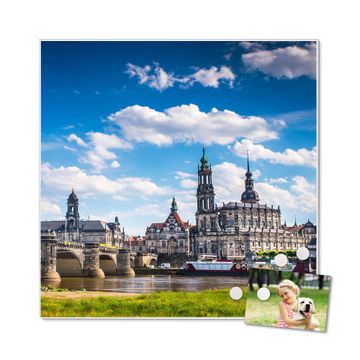 Die banjado Design Magnettafel mit Motiv Motiv Elbflorenz bringt Ordnung in Ihr Zettelchaos. Fotos, Termine, Notizen oder Rezepte lassen Sich hier stilvoll mit Magneten ordnen, Sie behalten alles im Blick. An der Pinnwand halten alle handelsüblichen Magnete. Mit dieser Pinnwand aus Metall haben Sie auch ohne Notizen und Magnete ein schönes Dekoelement. Das Quadratische Format bietet Ihnen ausreichend Platz um alle wichtigen Informationen im Blick zu behalten.