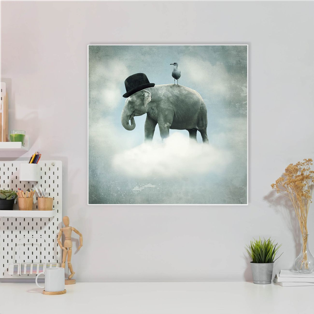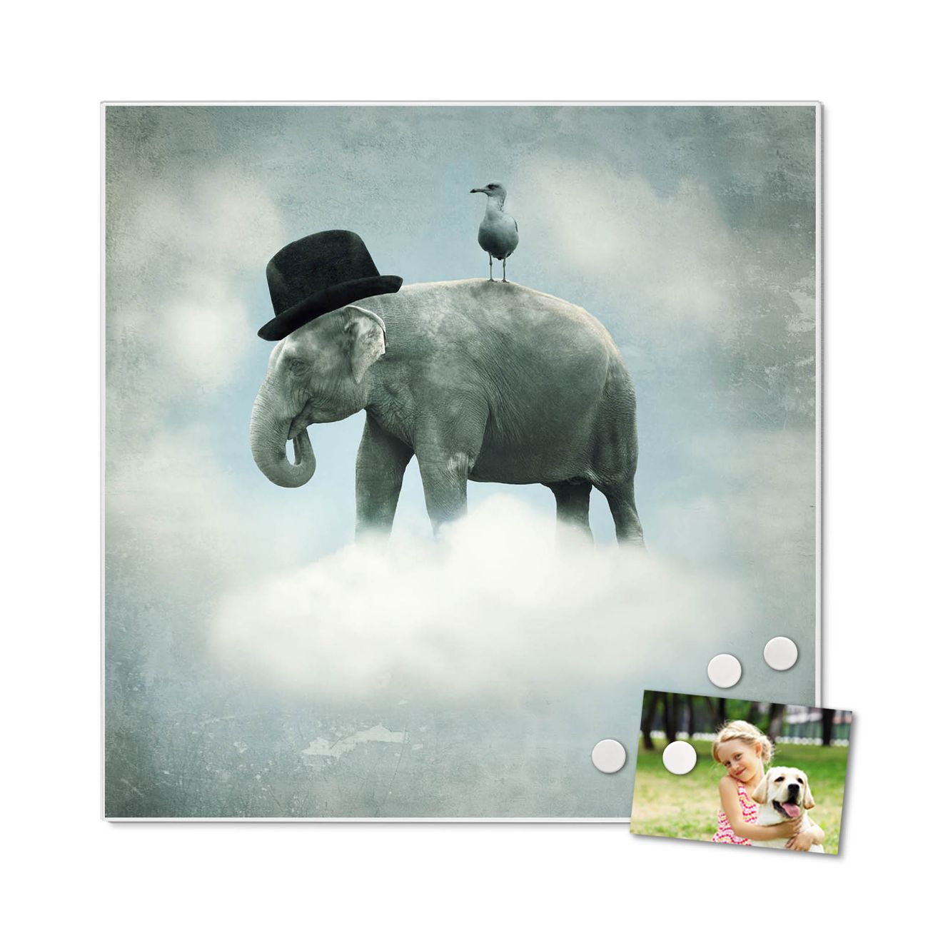 Stahl Magnettafel 50x50cm Elefant und Möwe