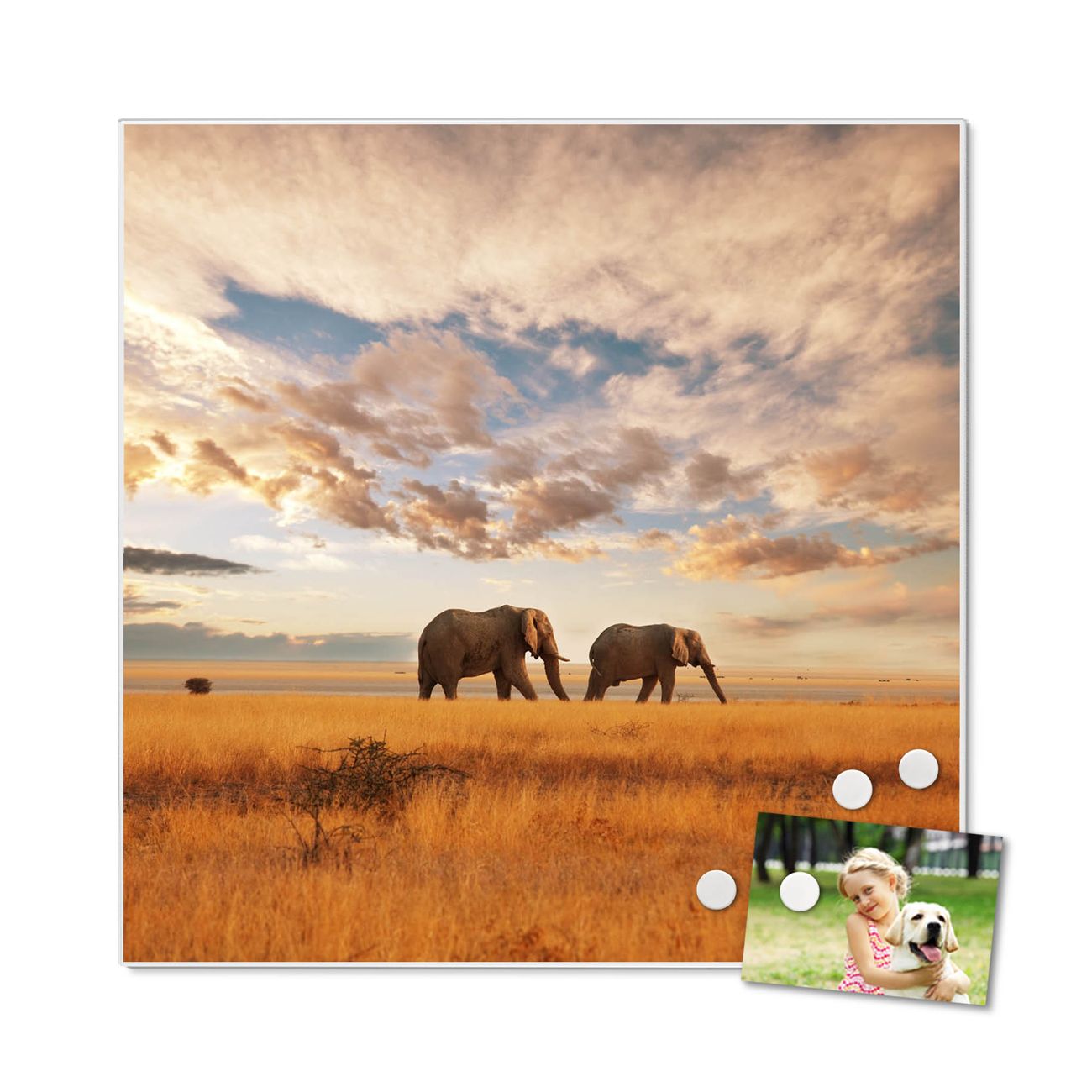 Die banjado Design Magnettafel mit Motiv Motiv Elefanten bringt Ordnung in Ihr Zettelchaos. Fotos, Termine, Notizen oder Rezepte lassen Sich hier stilvoll mit Magneten ordnen, Sie behalten alles im Blick. An der Pinnwand halten alle handelsüblichen Magnete. Mit dieser Pinnwand aus Metall haben Sie auch ohne Notizen und Magnete ein schönes Dekoelement. Das Quadratische Format bietet Ihnen ausreichend Platz um alle wichtigen Informationen im Blick zu behalten.