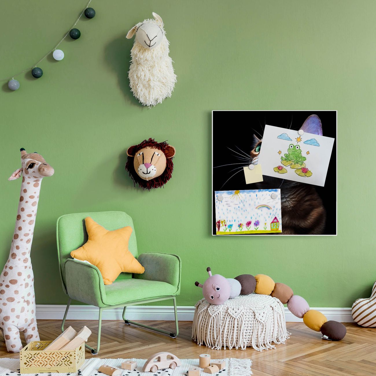 Die banjado Design Magnettafel mit Motiv Motiv Esmeralda bringt Ordnung in Ihr Zettelchaos. Fotos, Termine, Notizen oder Rezepte lassen Sich hier stilvoll mit Magneten ordnen, Sie behalten alles im Blick. An der Pinnwand halten alle handelsüblichen Magnete. Mit dieser Pinnwand aus Metall haben Sie auch ohne Notizen und Magnete ein schönes Dekoelement. Das Quadratische Format bietet Ihnen ausreichend Platz um alle wichtigen Informationen im Blick zu behalten.