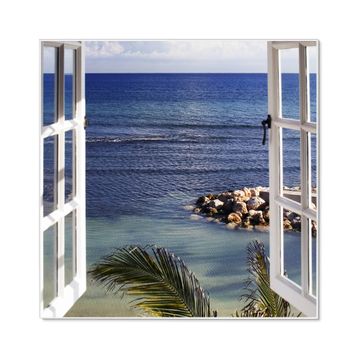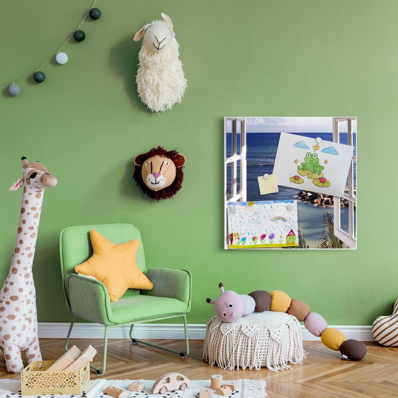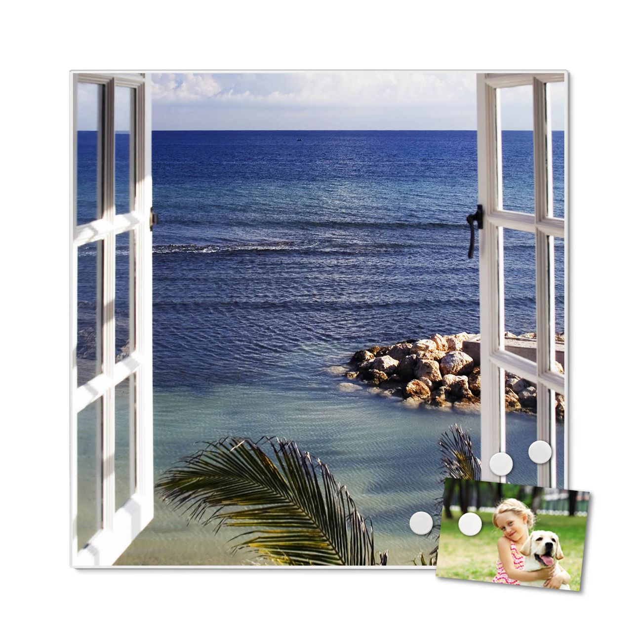 Die banjado Design Magnettafel mit Motiv Motiv Fensterpanorama bringt Ordnung in Ihr Zettelchaos. Fotos, Termine, Notizen oder Rezepte lassen Sich hier stilvoll mit Magneten ordnen, Sie behalten alles im Blick. An der Pinnwand halten alle handelsüblichen Magnete. Mit dieser Pinnwand aus Metall haben Sie auch ohne Notizen und Magnete ein schönes Dekoelement. Das Quadratische Format bietet Ihnen ausreichend Platz um alle wichtigen Informationen im Blick zu behalten.