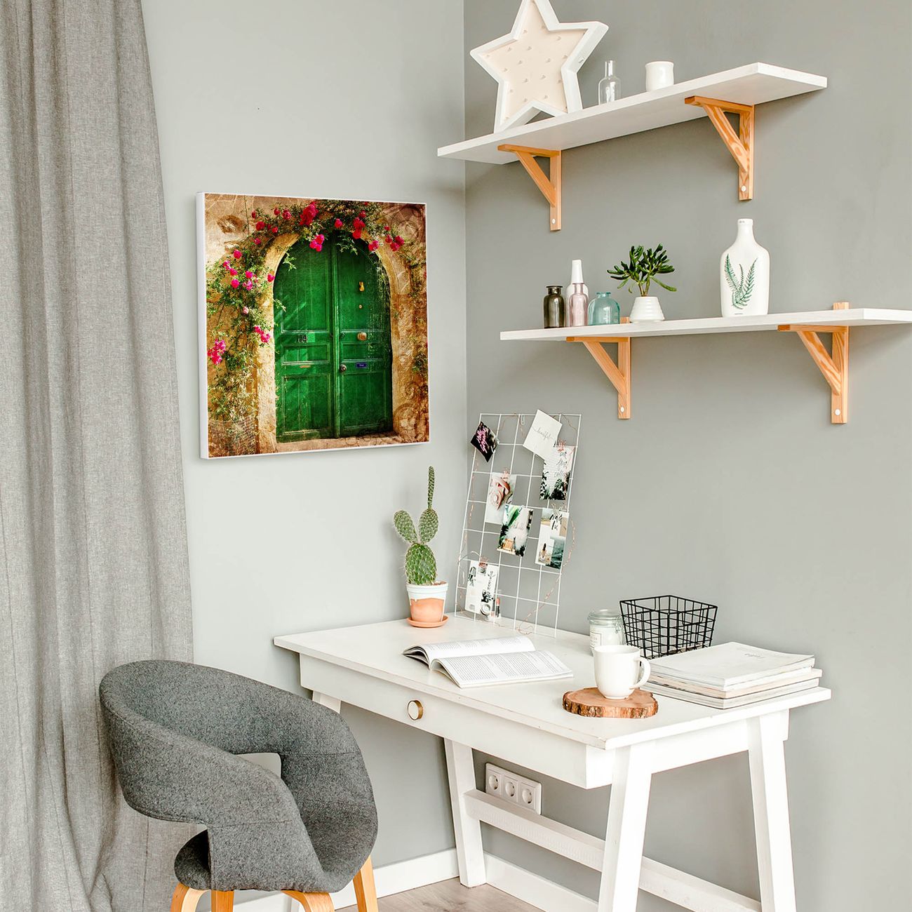 Die banjado Design Magnettafel mit Motiv Motiv Ferienhaus bringt Ordnung in Ihr Zettelchaos. Fotos, Termine, Notizen oder Rezepte lassen Sich hier stilvoll mit Magneten ordnen, Sie behalten alles im Blick. An der Pinnwand halten alle handelsüblichen Magnete. Mit dieser Pinnwand aus Metall haben Sie auch ohne Notizen und Magnete ein schönes Dekoelement. Das Quadratische Format bietet Ihnen ausreichend Platz um alle wichtigen Informationen im Blick zu behalten.