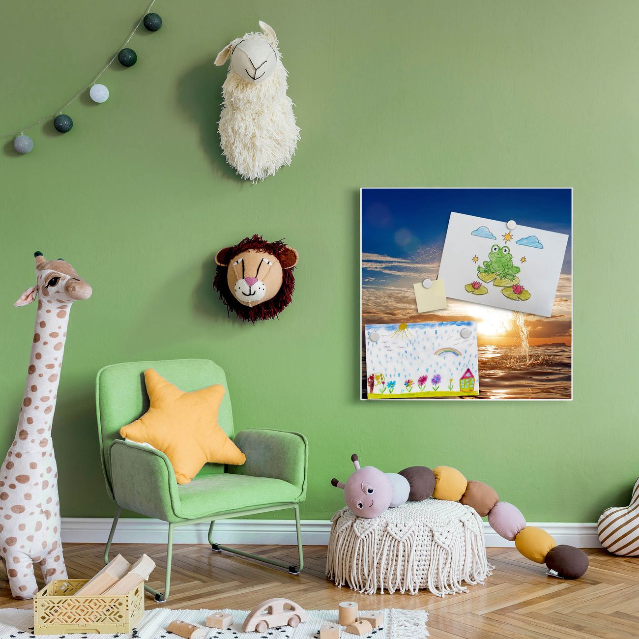 Die banjado Design Magnettafel mit Motiv Motiv Filippo bringt Ordnung in Ihr Zettelchaos. Fotos, Termine, Notizen oder Rezepte lassen Sich hier stilvoll mit Magneten ordnen, Sie behalten alles im Blick. An der Pinnwand halten alle handelsüblichen Magnete. Mit dieser Pinnwand aus Metall haben Sie auch ohne Notizen und Magnete ein schönes Dekoelement. Das Quadratische Format bietet Ihnen ausreichend Platz um alle wichtigen Informationen im Blick zu behalten.