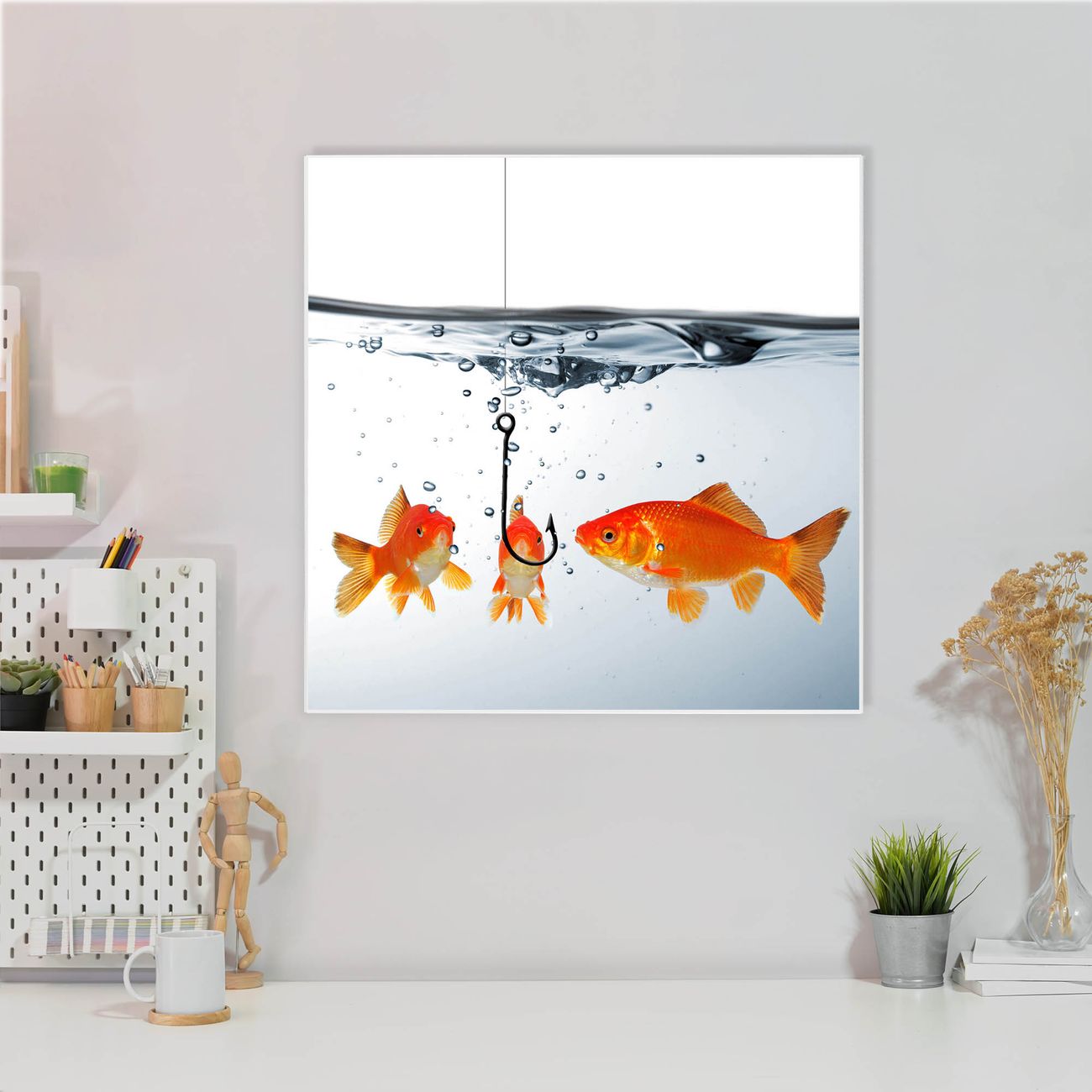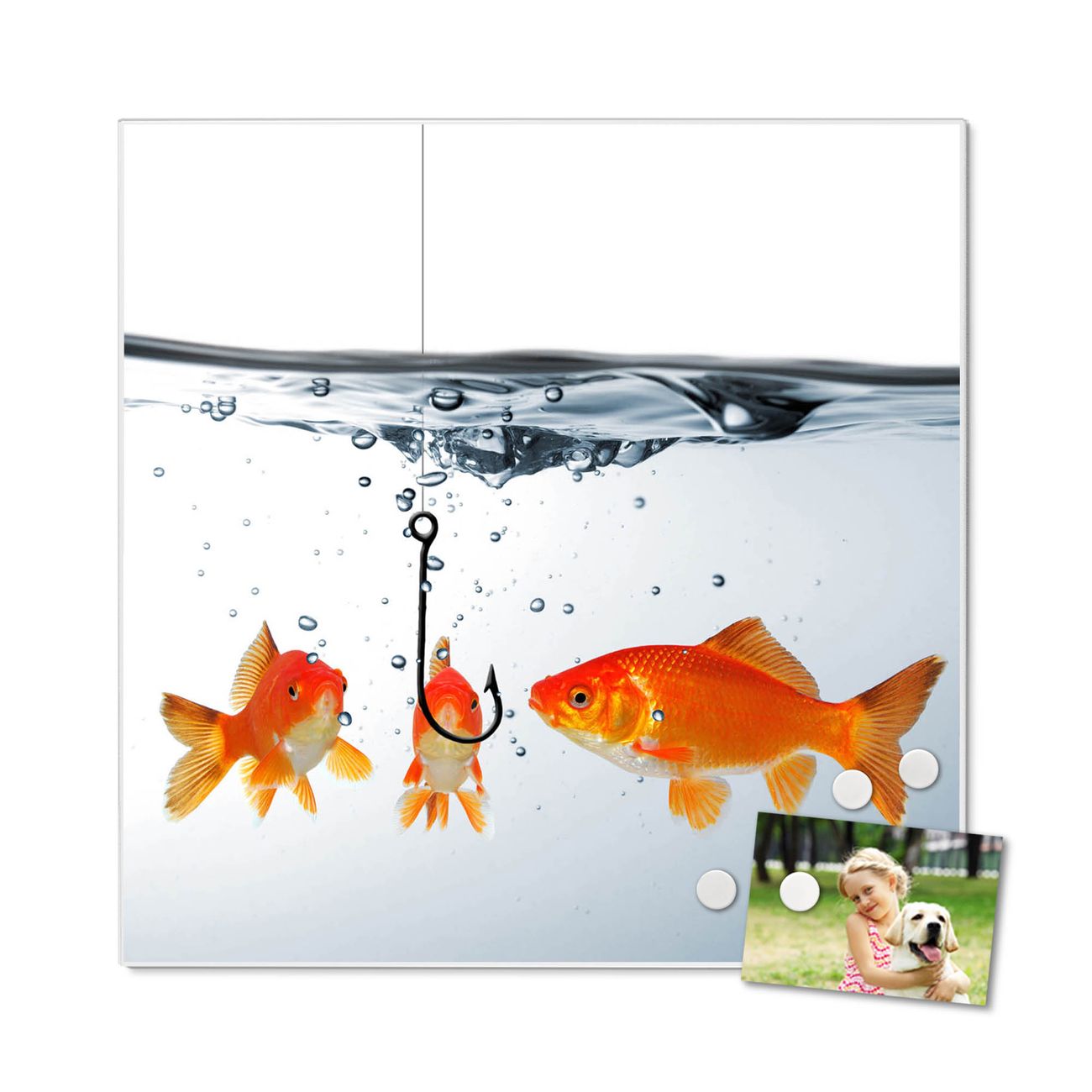 Die banjado Design Magnettafel mit Motiv Motiv Fische bringt Ordnung in Ihr Zettelchaos. Fotos, Termine, Notizen oder Rezepte lassen Sich hier stilvoll mit Magneten ordnen, Sie behalten alles im Blick. An der Pinnwand halten alle handelsüblichen Magnete. Mit dieser Pinnwand aus Metall haben Sie auch ohne Notizen und Magnete ein schönes Dekoelement. Das Quadratische Format bietet Ihnen ausreichend Platz um alle wichtigen Informationen im Blick zu behalten.