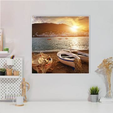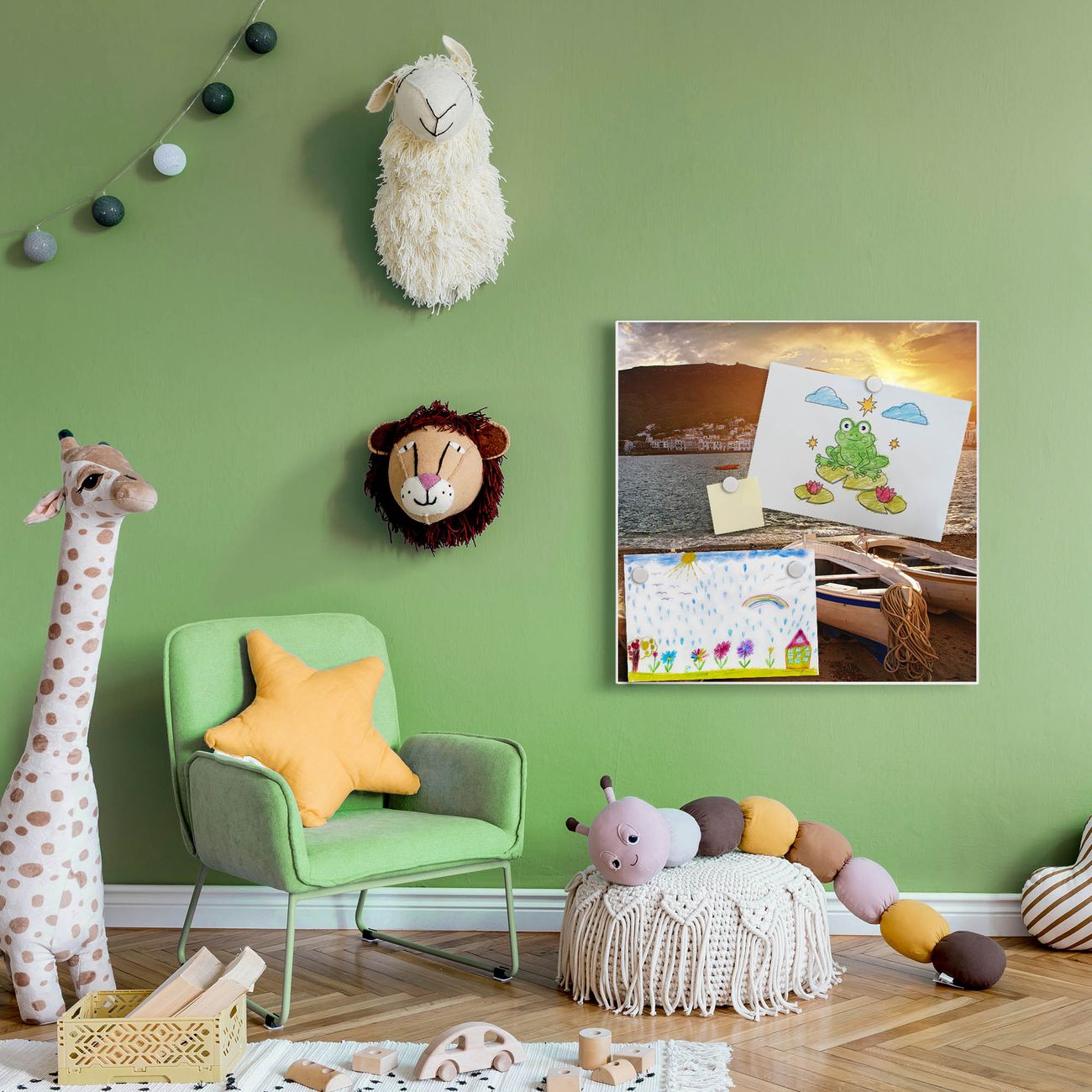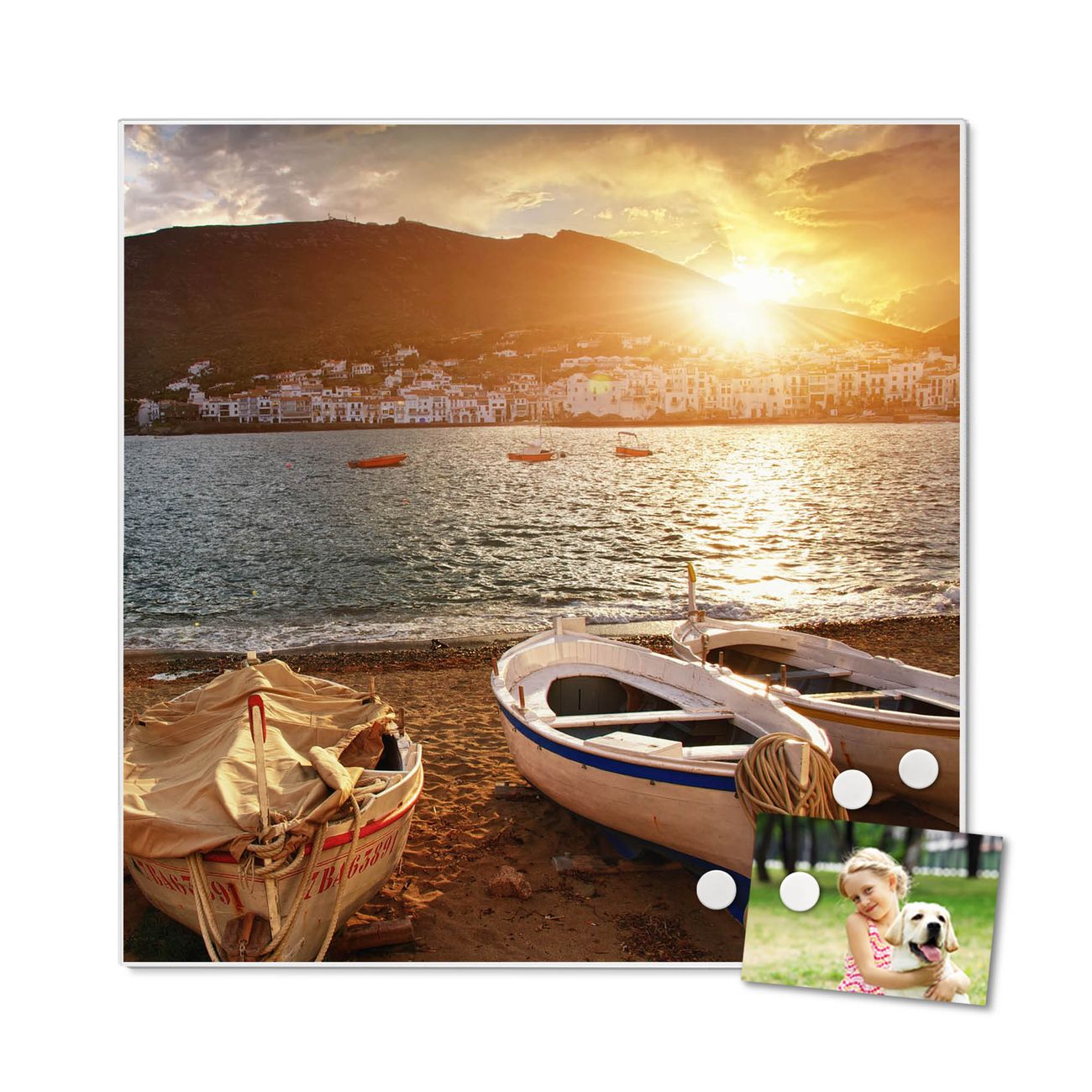 Die banjado Design Magnettafel mit Motiv Motiv Fischerboote bringt Ordnung in Ihr Zettelchaos. Fotos, Termine, Notizen oder Rezepte lassen Sich hier stilvoll mit Magneten ordnen, Sie behalten alles im Blick. An der Pinnwand halten alle handelsüblichen Magnete. Mit dieser Pinnwand aus Metall haben Sie auch ohne Notizen und Magnete ein schönes Dekoelement. Das Quadratische Format bietet Ihnen ausreichend Platz um alle wichtigen Informationen im Blick zu behalten.