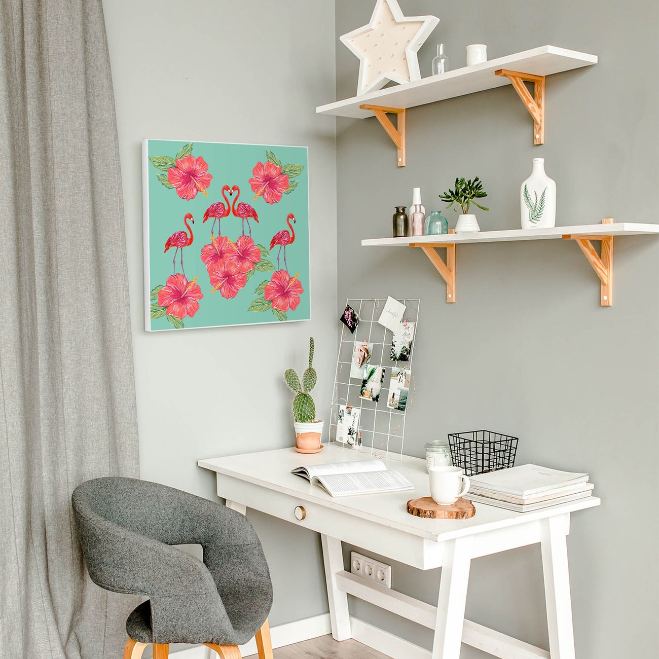 Stahl Magnettafel 50x50cm Flamingo Liebe
