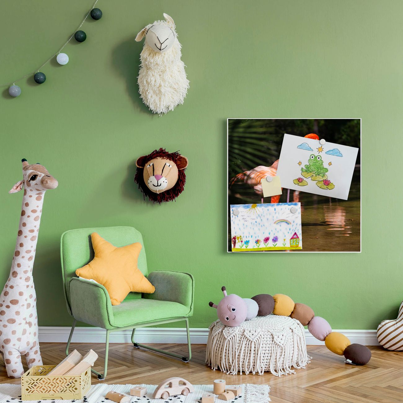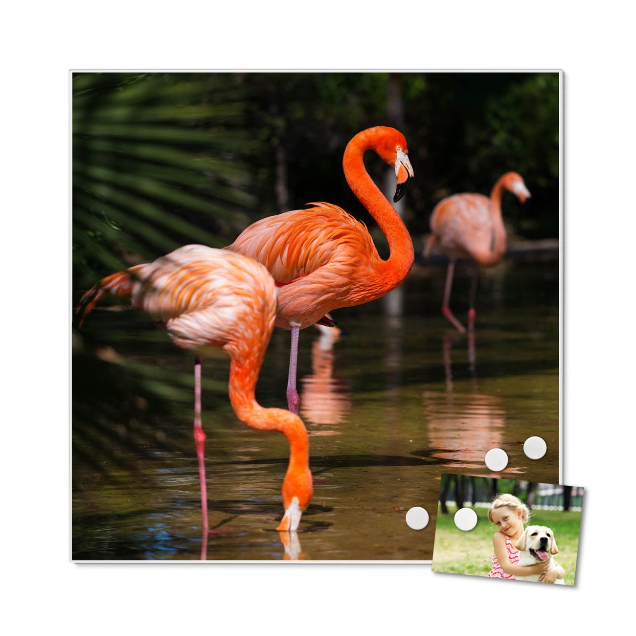Die banjado Design Magnettafel mit Motiv Motiv Flamingo bringt Ordnung in Ihr Zettelchaos. Fotos, Termine, Notizen oder Rezepte lassen Sich hier stilvoll mit Magneten ordnen, Sie behalten alles im Blick. An der Pinnwand halten alle handelsüblichen Magnete. Mit dieser Pinnwand aus Metall haben Sie auch ohne Notizen und Magnete ein schönes Dekoelement. Das Quadratische Format bietet Ihnen ausreichend Platz um alle wichtigen Informationen im Blick zu behalten.