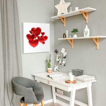 Die banjado Design Magnettafel mit Motiv Motiv Fliegende Herzen bringt Ordnung in Ihr Zettelchaos. Fotos, Termine, Notizen oder Rezepte lassen Sich hier stilvoll mit Magneten ordnen, Sie behalten alles im Blick. An der Pinnwand halten alle handelsüblichen Magnete. Mit dieser Pinnwand aus Metall haben Sie auch ohne Notizen und Magnete ein schönes Dekoelement. Das Quadratische Format bietet Ihnen ausreichend Platz um alle wichtigen Informationen im Blick zu behalten.
