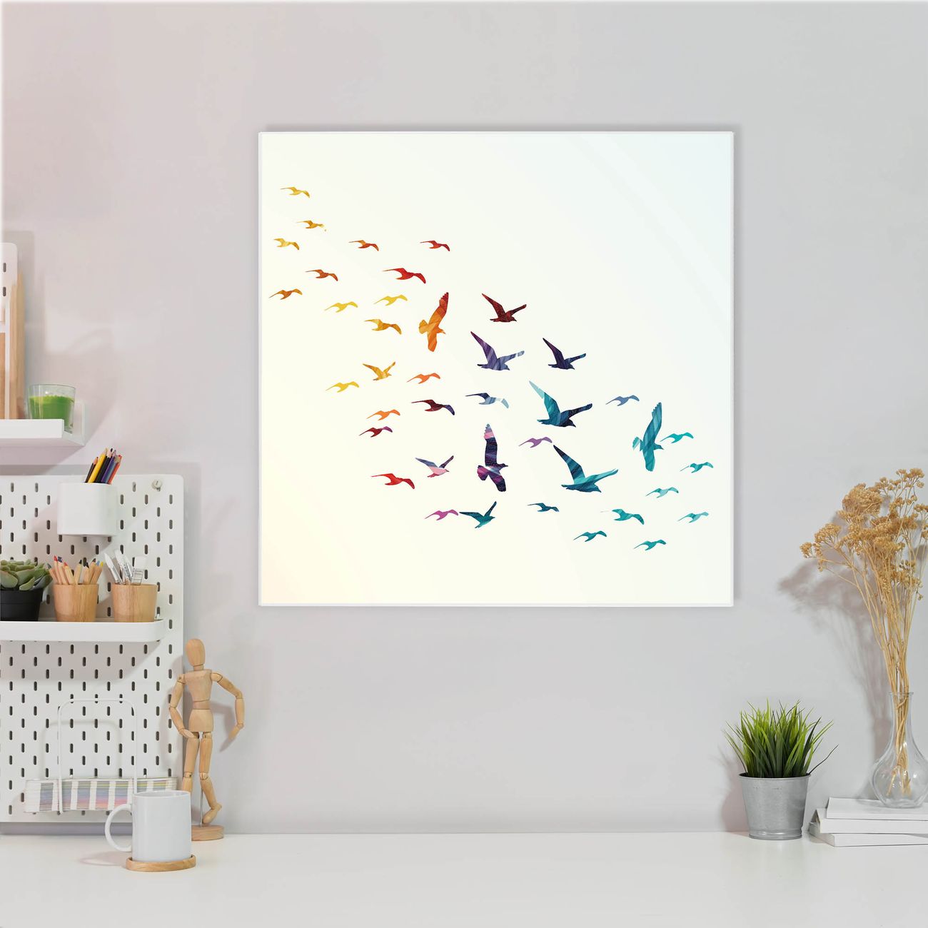 Stahl Magnettafel 50x50cm Fliegende Vögel