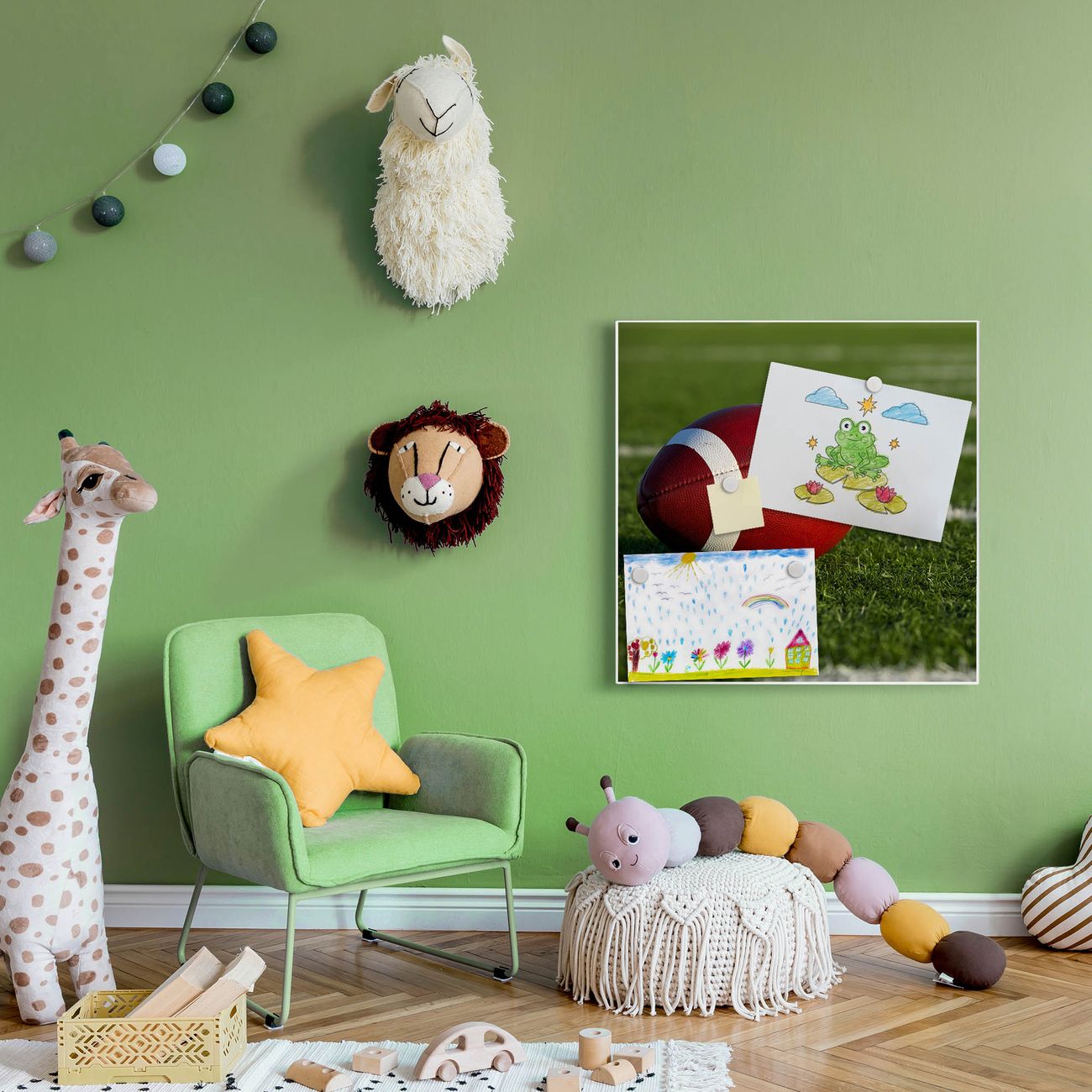 Die banjado Design Magnettafel mit Motiv Motiv Football bringt Ordnung in Ihr Zettelchaos. Fotos, Termine, Notizen oder Rezepte lassen Sich hier stilvoll mit Magneten ordnen, Sie behalten alles im Blick. An der Pinnwand halten alle handelsüblichen Magnete. Mit dieser Pinnwand aus Metall haben Sie auch ohne Notizen und Magnete ein schönes Dekoelement. Das Quadratische Format bietet Ihnen ausreichend Platz um alle wichtigen Informationen im Blick zu behalten.