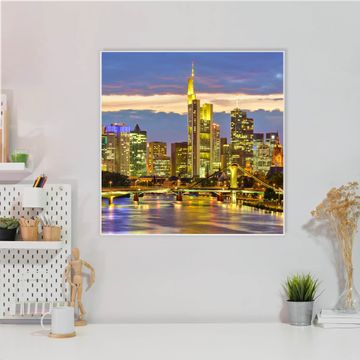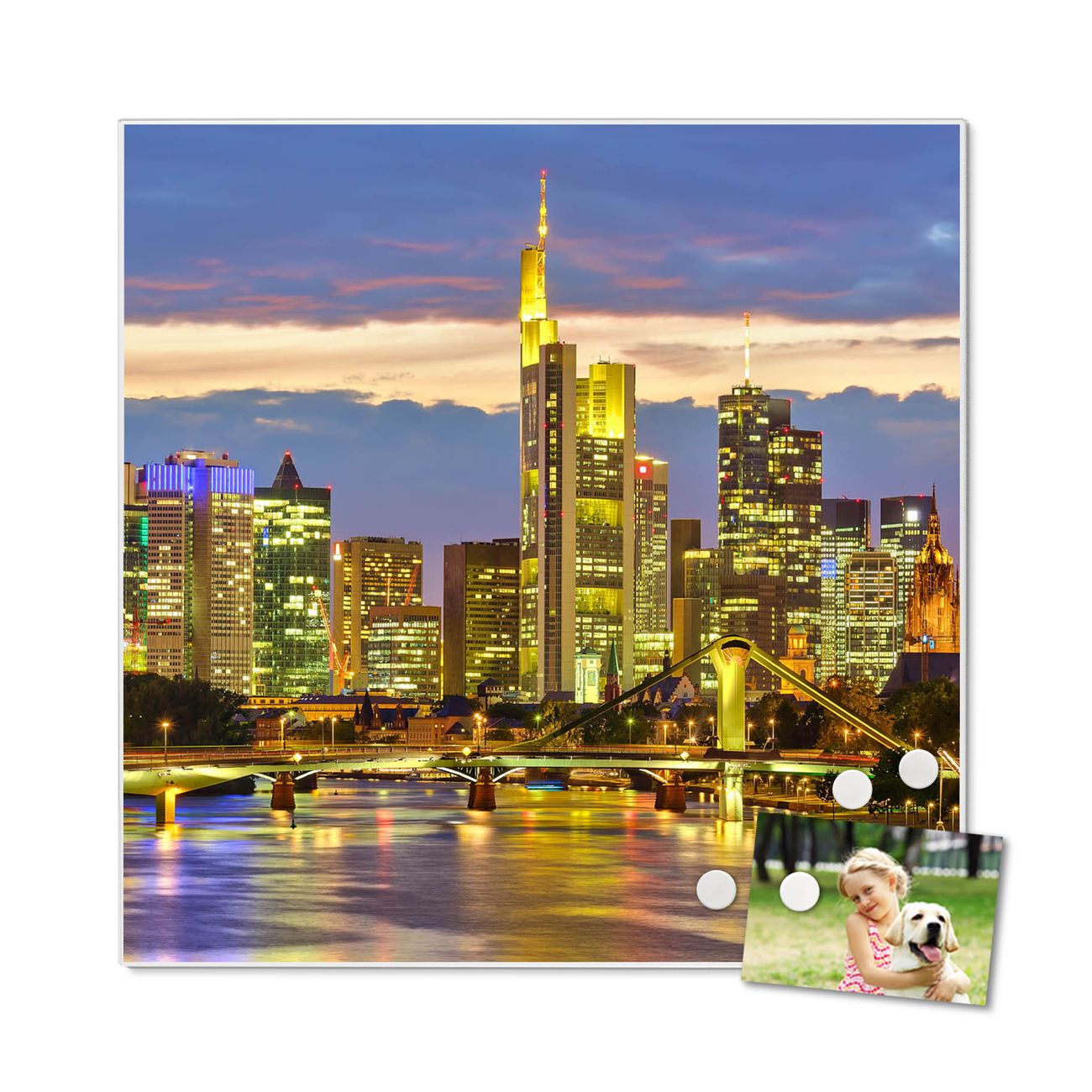 Die banjado Design Magnettafel mit Motiv Motiv Frankfurt Main bringt Ordnung in Ihr Zettelchaos. Fotos, Termine, Notizen oder Rezepte lassen Sich hier stilvoll mit Magneten ordnen, Sie behalten alles im Blick. An der Pinnwand halten alle handelsüblichen Magnete. Mit dieser Pinnwand aus Metall haben Sie auch ohne Notizen und Magnete ein schönes Dekoelement. Das Quadratische Format bietet Ihnen ausreichend Platz um alle wichtigen Informationen im Blick zu behalten.