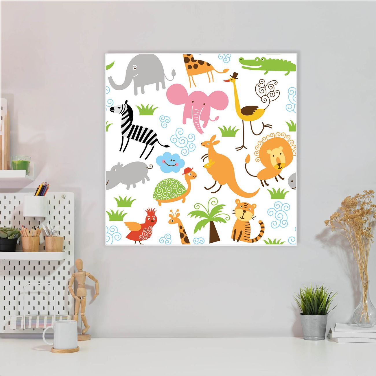 Stahl Magnettafel 50x50cm Fröhliche Tiere