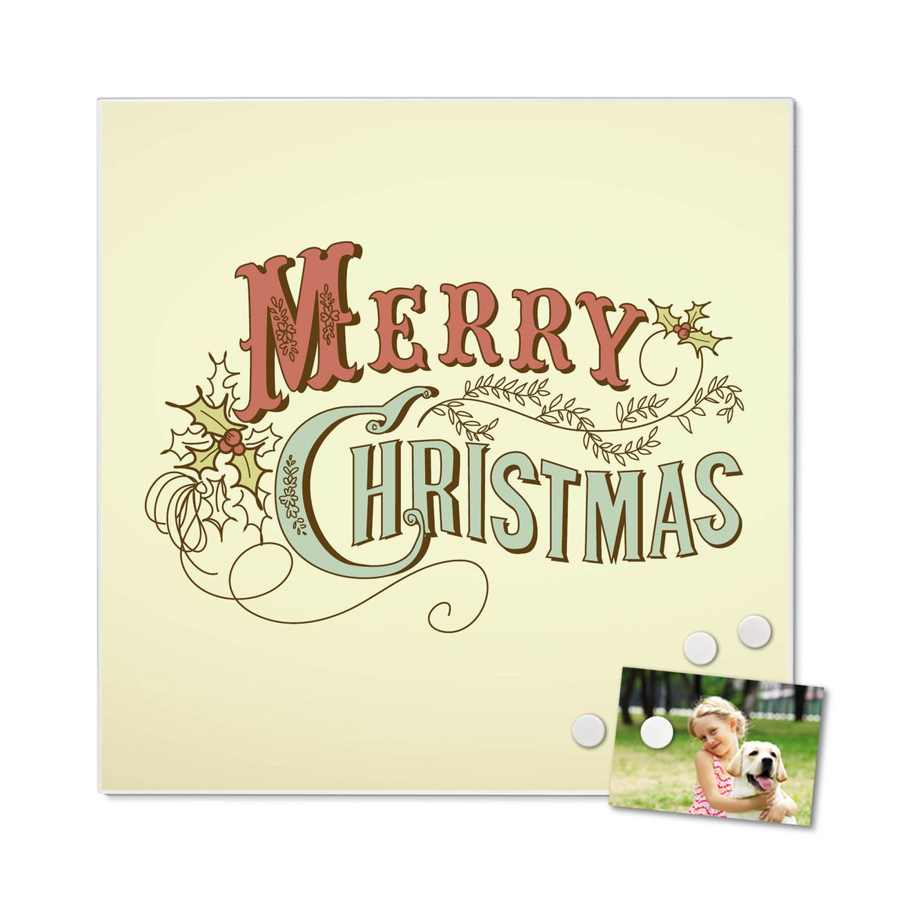 Die banjado Design Magnettafel mit Motiv Motiv Frohes Fest bringt Ordnung in Ihr Zettelchaos. Fotos, Termine, Notizen oder Rezepte lassen Sich hier stilvoll mit Magneten ordnen, Sie behalten alles im Blick. An der Pinnwand halten alle handelsüblichen Magnete. Mit dieser Pinnwand aus Metall haben Sie auch ohne Notizen und Magnete ein schönes Dekoelement. Das Quadratische Format bietet Ihnen ausreichend Platz um alle wichtigen Informationen im Blick zu behalten.