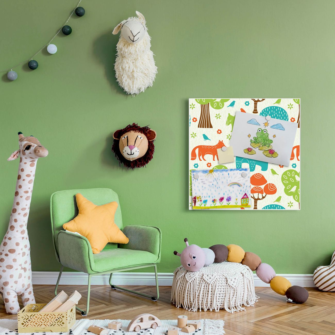 Die banjado Design Magnettafel mit Motiv Motiv Fuchs Bär Wald bringt Ordnung in Ihr Zettelchaos. Fotos, Termine, Notizen oder Rezepte lassen Sich hier stilvoll mit Magneten ordnen, Sie behalten alles im Blick. An der Pinnwand halten alle handelsüblichen Magnete. Mit dieser Pinnwand aus Metall haben Sie auch ohne Notizen und Magnete ein schönes Dekoelement. Das Quadratische Format bietet Ihnen ausreichend Platz um alle wichtigen Informationen im Blick zu behalten.