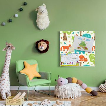 Stahl Magnettafel 50x50cm Fuchs Bär Wald