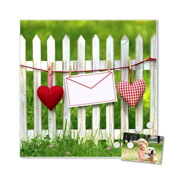 Die banjado Design Magnettafel mit Motiv Motiv Gartenzaun bringt Ordnung in Ihr Zettelchaos. Fotos, Termine, Notizen oder Rezepte lassen Sich hier stilvoll mit Magneten ordnen, Sie behalten alles im Blick. An der Pinnwand halten alle handelsüblichen Magnete. Mit dieser Pinnwand aus Metall haben Sie auch ohne Notizen und Magnete ein schönes Dekoelement. Das Quadratische Format bietet Ihnen ausreichend Platz um alle wichtigen Informationen im Blick zu behalten.