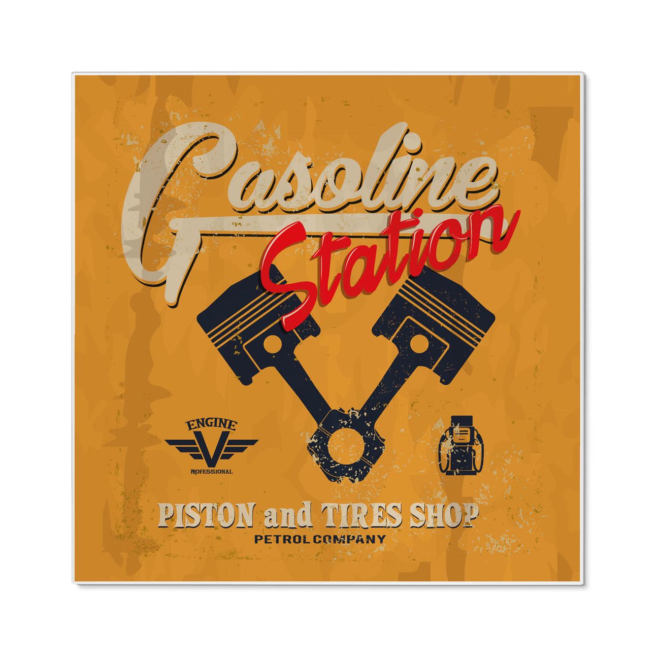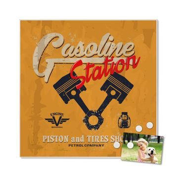 Stahl Magnettafel 50x50cm Gasoline Station