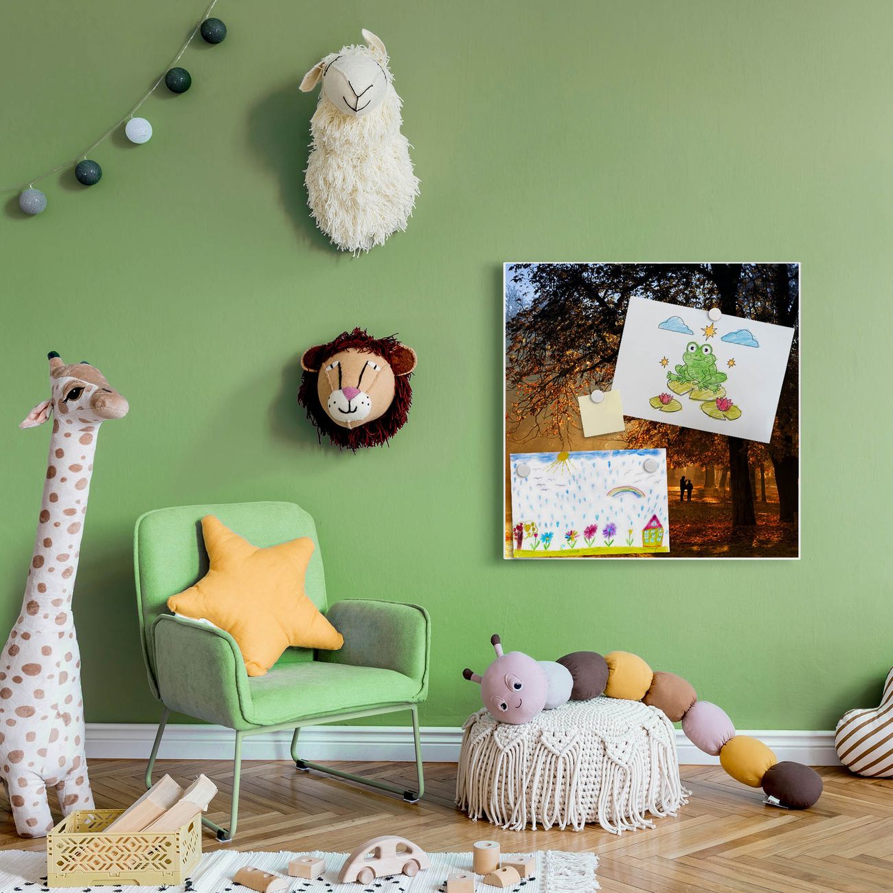 Die banjado Design Magnettafel mit Motiv Motiv Goldener Herbst bringt Ordnung in Ihr Zettelchaos. Fotos, Termine, Notizen oder Rezepte lassen Sich hier stilvoll mit Magneten ordnen, Sie behalten alles im Blick. An der Pinnwand halten alle handelsüblichen Magnete. Mit dieser Pinnwand aus Metall haben Sie auch ohne Notizen und Magnete ein schönes Dekoelement. Das Quadratische Format bietet Ihnen ausreichend Platz um alle wichtigen Informationen im Blick zu behalten.