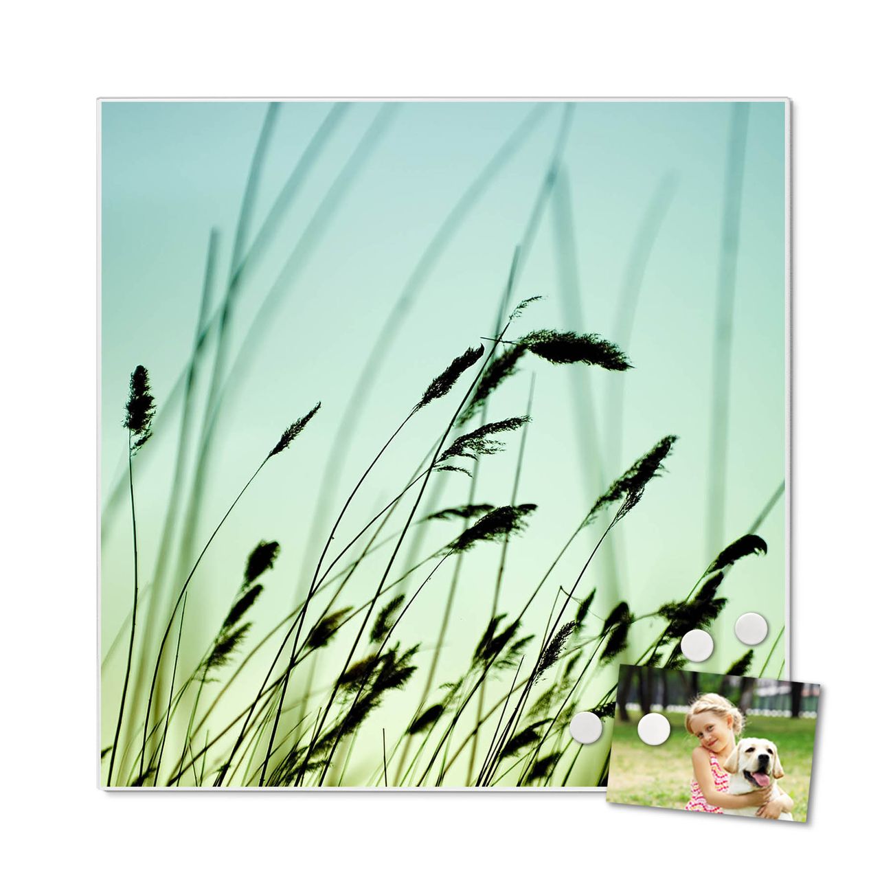 Die banjado Design Magnettafel mit Motiv Motiv Gräser bringt Ordnung in Ihr Zettelchaos. Fotos, Termine, Notizen oder Rezepte lassen Sich hier stilvoll mit Magneten ordnen, Sie behalten alles im Blick. An der Pinnwand halten alle handelsüblichen Magnete. Mit dieser Pinnwand aus Metall haben Sie auch ohne Notizen und Magnete ein schönes Dekoelement. Das Quadratische Format bietet Ihnen ausreichend Platz um alle wichtigen Informationen im Blick zu behalten.