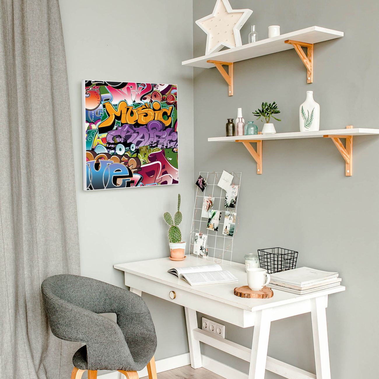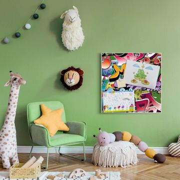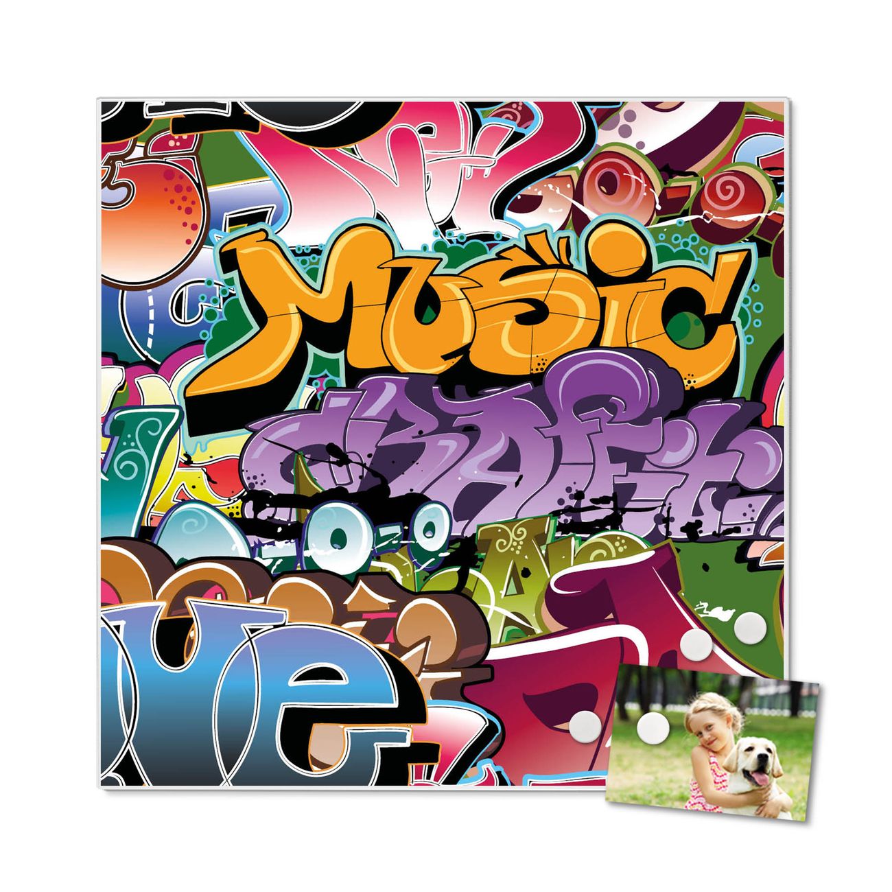 Die banjado Design Magnettafel mit Motiv Motiv Graffiti bringt Ordnung in Ihr Zettelchaos. Fotos, Termine, Notizen oder Rezepte lassen Sich hier stilvoll mit Magneten ordnen, Sie behalten alles im Blick. An der Pinnwand halten alle handelsüblichen Magnete. Mit dieser Pinnwand aus Metall haben Sie auch ohne Notizen und Magnete ein schönes Dekoelement. Das Quadratische Format bietet Ihnen ausreichend Platz um alle wichtigen Informationen im Blick zu behalten.