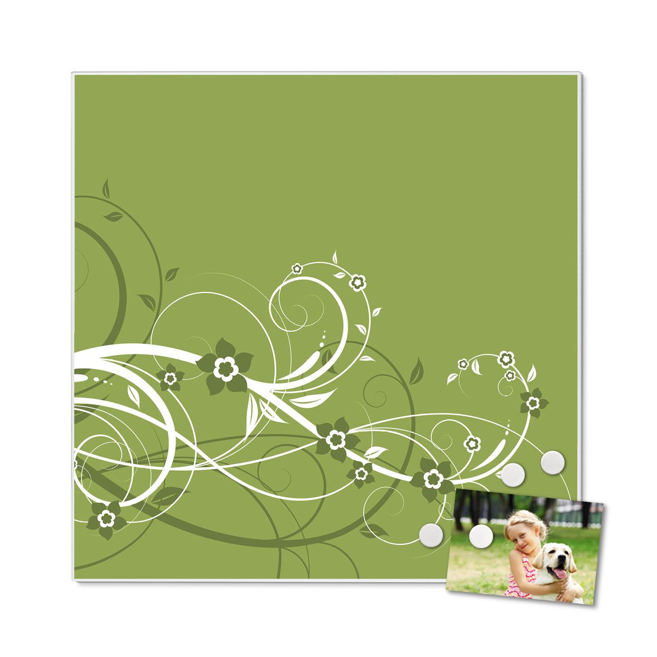 Stahl Magnettafel 50x50cm Grüne Blüten