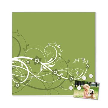 Die banjado Design Magnettafel mit Motiv Motiv Grüne Blüten bringt Ordnung in Ihr Zettelchaos. Fotos, Termine, Notizen oder Rezepte lassen Sich hier stilvoll mit Magneten ordnen, Sie behalten alles im Blick. An der Pinnwand halten alle handelsüblichen Magnete. Mit dieser Pinnwand aus Metall haben Sie auch ohne Notizen und Magnete ein schönes Dekoelement. Das Quadratische Format bietet Ihnen ausreichend Platz um alle wichtigen Informationen im Blick zu behalten.