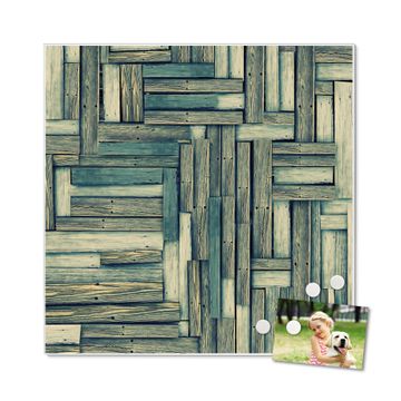Die banjado Design Magnettafel mit Motiv Motiv Grüne Planken bringt Ordnung in Ihr Zettelchaos. Fotos, Termine, Notizen oder Rezepte lassen Sich hier stilvoll mit Magneten ordnen, Sie behalten alles im Blick. An der Pinnwand halten alle handelsüblichen Magnete. Mit dieser Pinnwand aus Metall haben Sie auch ohne Notizen und Magnete ein schönes Dekoelement. Das Quadratische Format bietet Ihnen ausreichend Platz um alle wichtigen Informationen im Blick zu behalten.