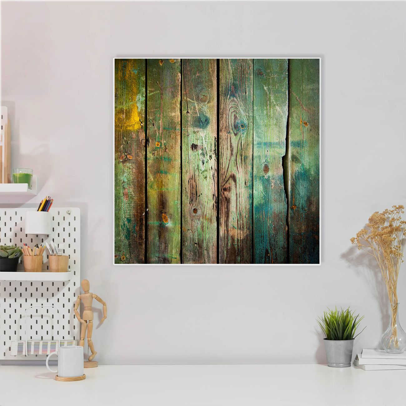 Stahl Magnettafel 50x50cm Grünes Holz