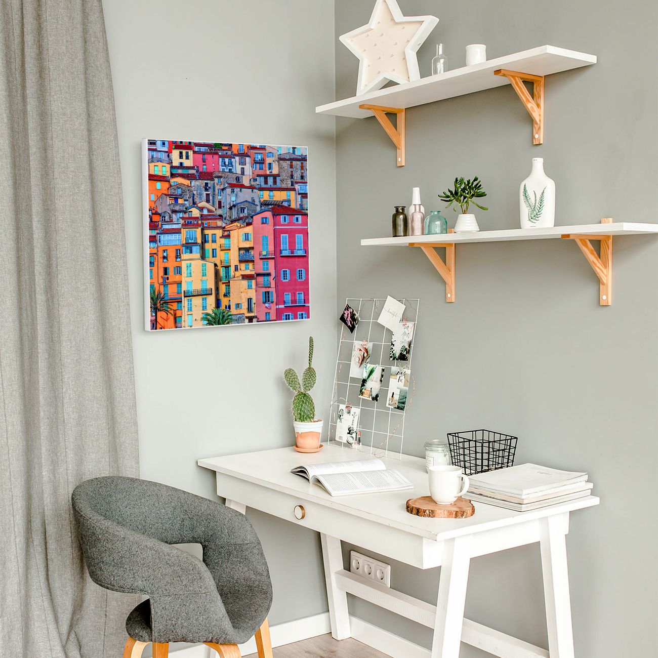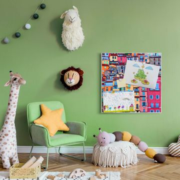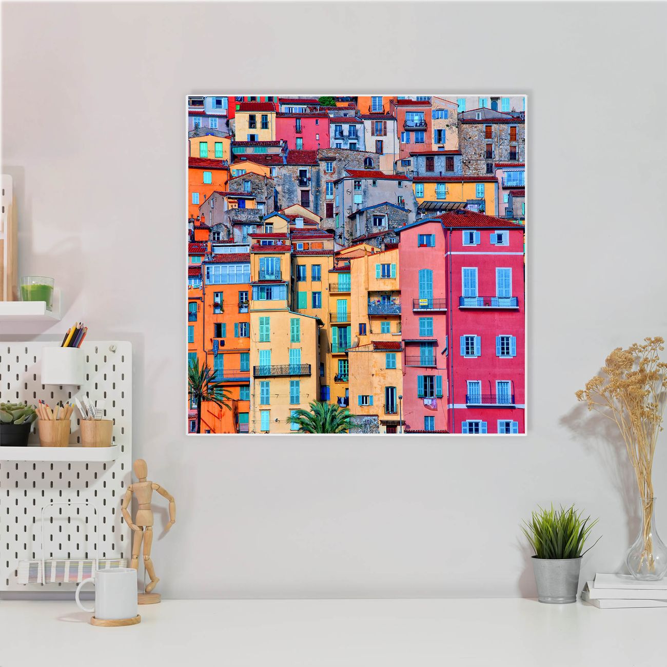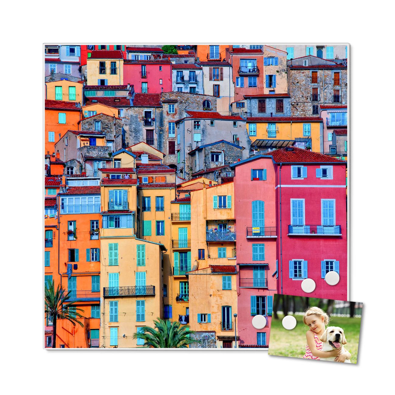 Die banjado Design Magnettafel mit Motiv Motiv Häuserberg bringt Ordnung in Ihr Zettelchaos. Fotos, Termine, Notizen oder Rezepte lassen Sich hier stilvoll mit Magneten ordnen, Sie behalten alles im Blick. An der Pinnwand halten alle handelsüblichen Magnete. Mit dieser Pinnwand aus Metall haben Sie auch ohne Notizen und Magnete ein schönes Dekoelement. Das Quadratische Format bietet Ihnen ausreichend Platz um alle wichtigen Informationen im Blick zu behalten.