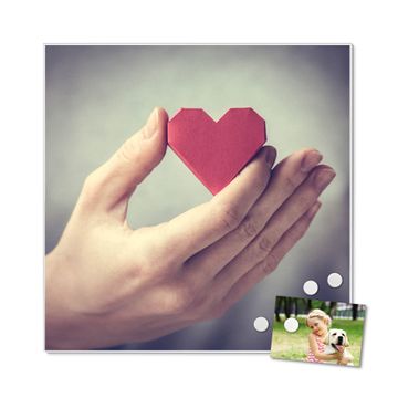 Die banjado Design Magnettafel mit Motiv Motiv Hand Aufs Herz bringt Ordnung in Ihr Zettelchaos. Fotos, Termine, Notizen oder Rezepte lassen Sich hier stilvoll mit Magneten ordnen, Sie behalten alles im Blick. An der Pinnwand halten alle handelsüblichen Magnete. Mit dieser Pinnwand aus Metall haben Sie auch ohne Notizen und Magnete ein schönes Dekoelement. Das Quadratische Format bietet Ihnen ausreichend Platz um alle wichtigen Informationen im Blick zu behalten.