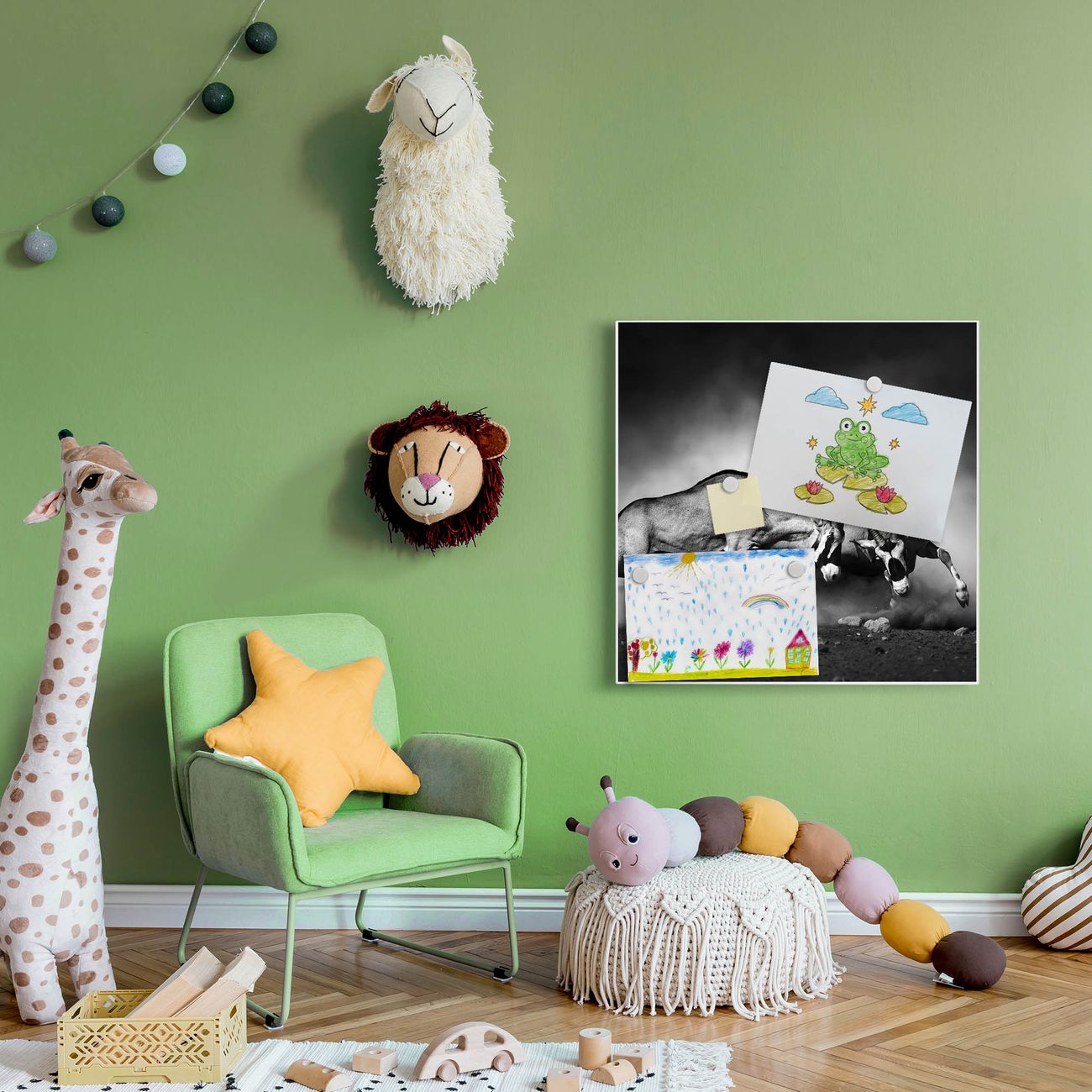 Die banjado Design Magnettafel mit Motiv Motiv Head Crash bringt Ordnung in Ihr Zettelchaos. Fotos, Termine, Notizen oder Rezepte lassen Sich hier stilvoll mit Magneten ordnen, Sie behalten alles im Blick. An der Pinnwand halten alle handelsüblichen Magnete. Mit dieser Pinnwand aus Metall haben Sie auch ohne Notizen und Magnete ein schönes Dekoelement. Das Quadratische Format bietet Ihnen ausreichend Platz um alle wichtigen Informationen im Blick zu behalten.