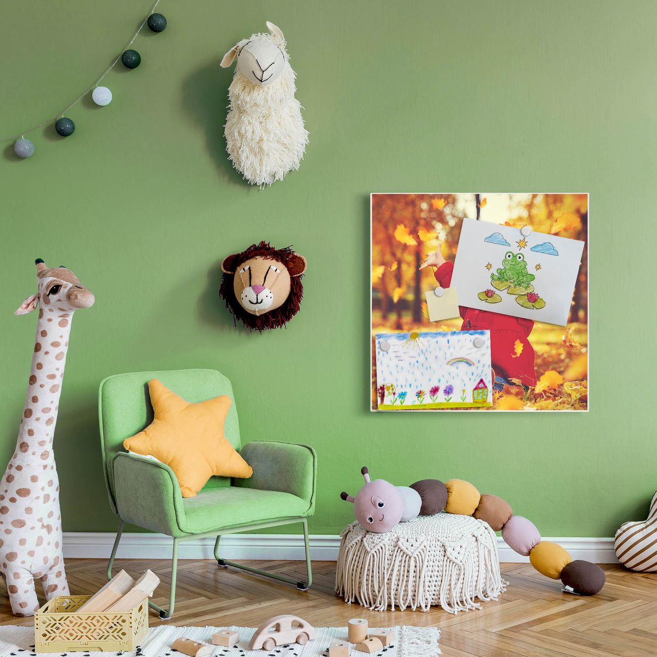Die banjado Design Magnettafel mit Motiv Motiv Herbstfreude bringt Ordnung in Ihr Zettelchaos. Fotos, Termine, Notizen oder Rezepte lassen Sich hier stilvoll mit Magneten ordnen, Sie behalten alles im Blick. An der Pinnwand halten alle handelsüblichen Magnete. Mit dieser Pinnwand aus Metall haben Sie auch ohne Notizen und Magnete ein schönes Dekoelement. Das Quadratische Format bietet Ihnen ausreichend Platz um alle wichtigen Informationen im Blick zu behalten.