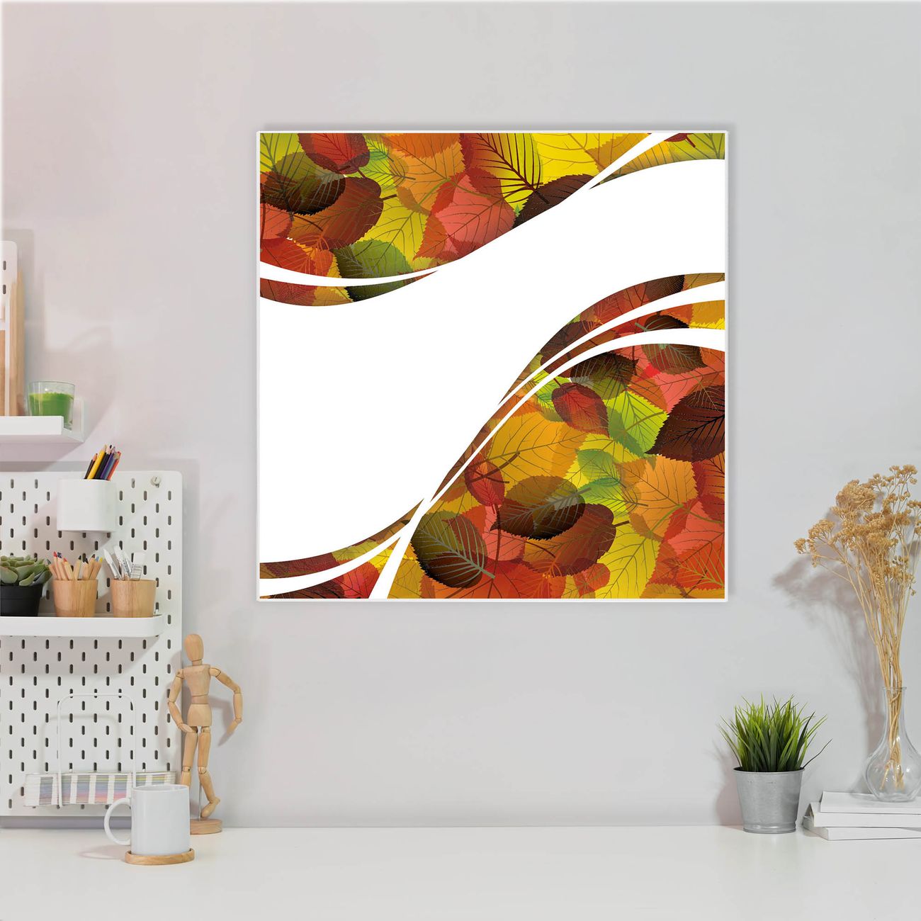 Stahl Magnettafel 50x50cm Herbstlaub