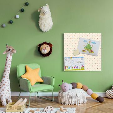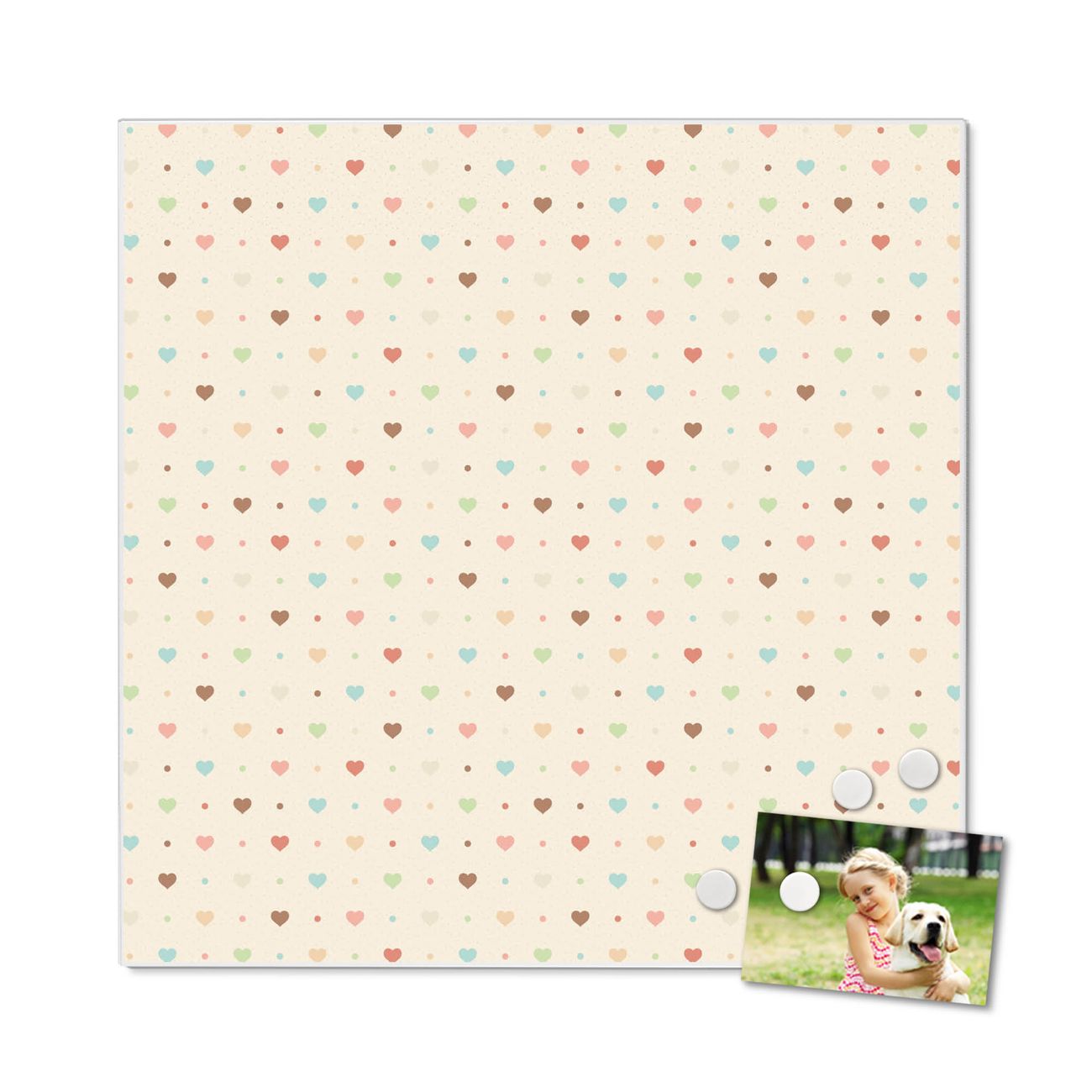 Die banjado Design Magnettafel mit Motiv Motiv Herzen bunt bringt Ordnung in Ihr Zettelchaos. Fotos, Termine, Notizen oder Rezepte lassen Sich hier stilvoll mit Magneten ordnen, Sie behalten alles im Blick. An der Pinnwand halten alle handelsüblichen Magnete. Mit dieser Pinnwand aus Metall haben Sie auch ohne Notizen und Magnete ein schönes Dekoelement. Das Quadratische Format bietet Ihnen ausreichend Platz um alle wichtigen Informationen im Blick zu behalten.