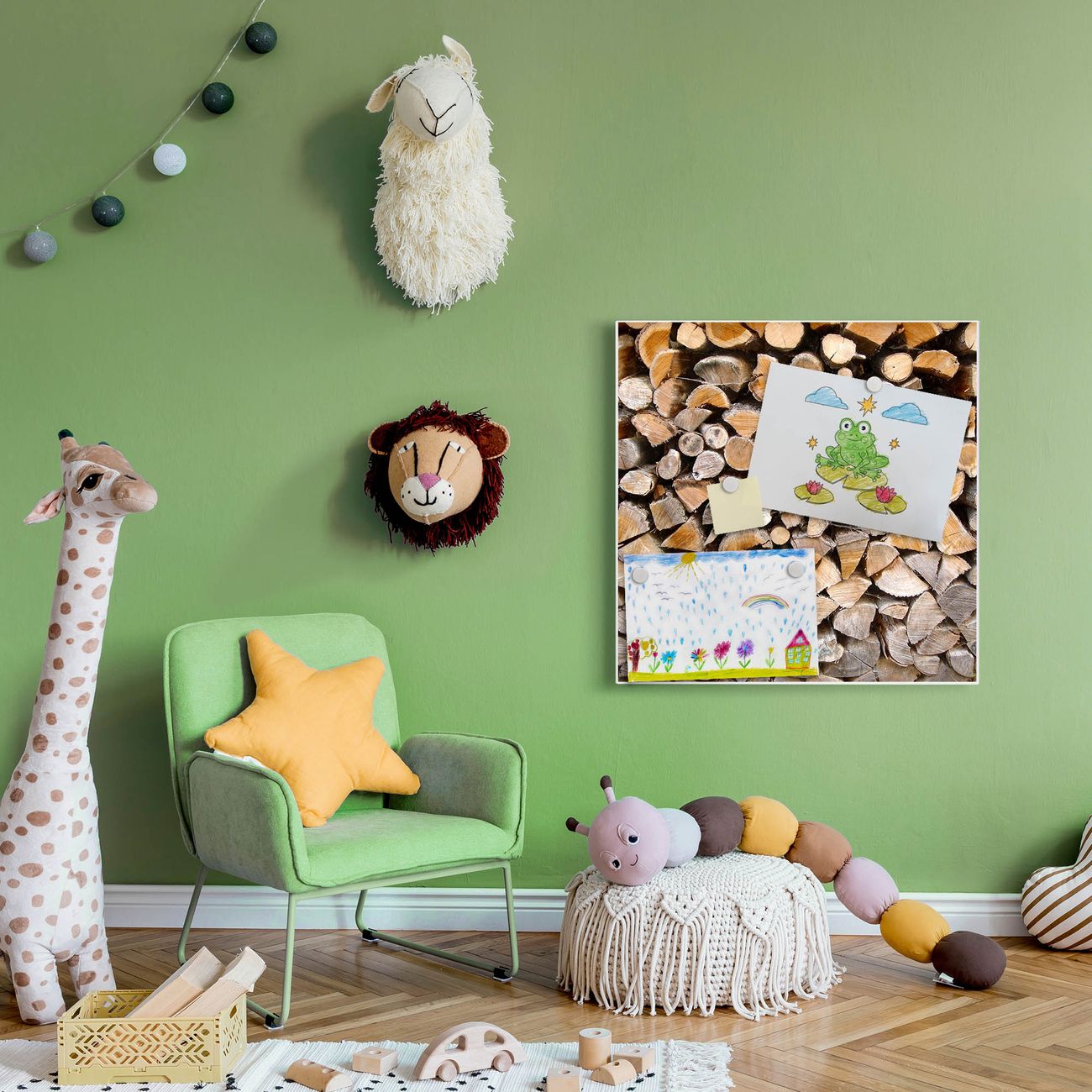 Die banjado Design Magnettafel mit Motiv Motiv Holzstapel bringt Ordnung in Ihr Zettelchaos. Fotos, Termine, Notizen oder Rezepte lassen Sich hier stilvoll mit Magneten ordnen, Sie behalten alles im Blick. An der Pinnwand halten alle handelsüblichen Magnete. Mit dieser Pinnwand aus Metall haben Sie auch ohne Notizen und Magnete ein schönes Dekoelement. Das Quadratische Format bietet Ihnen ausreichend Platz um alle wichtigen Informationen im Blick zu behalten.