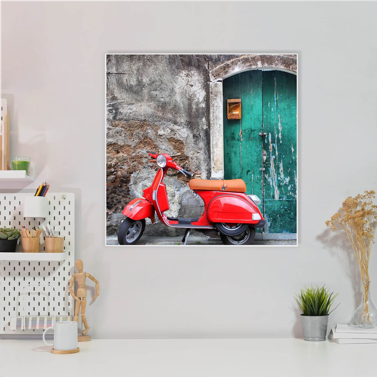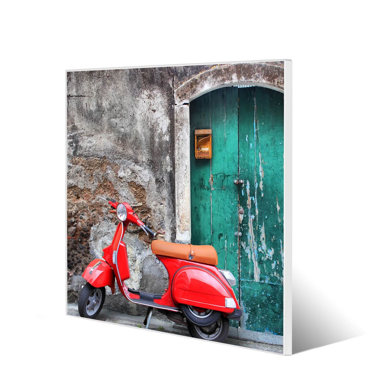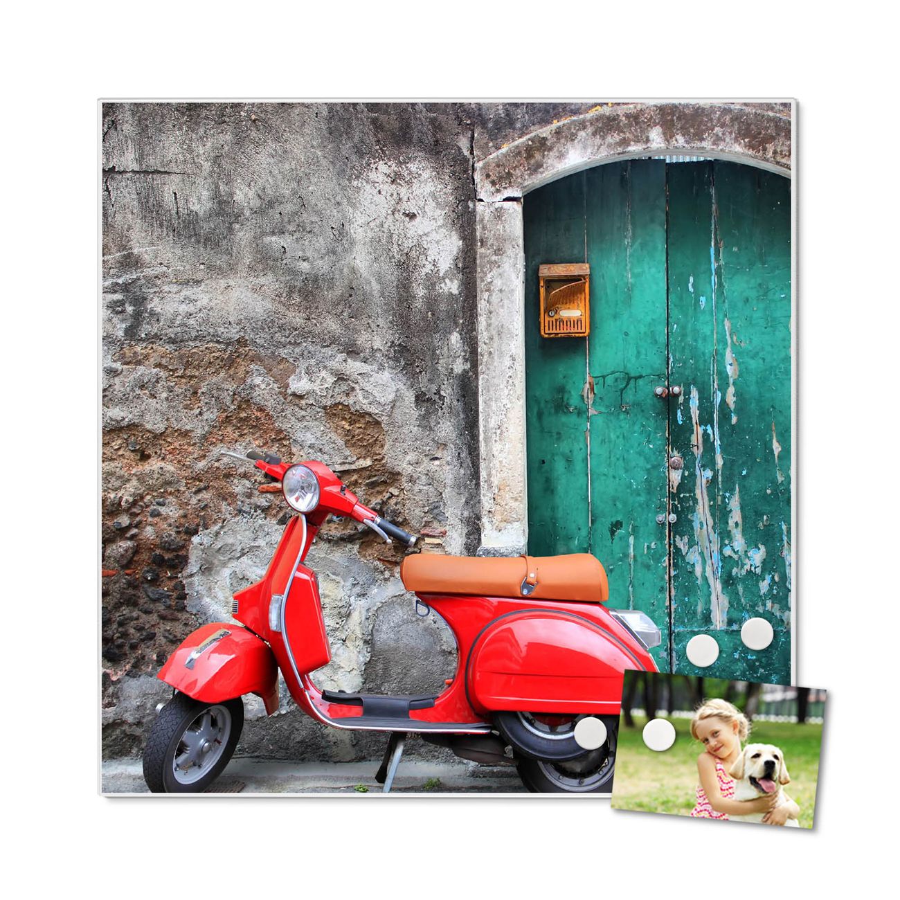 Die banjado Design Magnettafel mit Motiv Motiv Italienischer Roller bringt Ordnung in Ihr Zettelchaos. Fotos, Termine, Notizen oder Rezepte lassen Sich hier stilvoll mit Magneten ordnen, Sie behalten alles im Blick. An der Pinnwand halten alle handelsüblichen Magnete. Mit dieser Pinnwand aus Metall haben Sie auch ohne Notizen und Magnete ein schönes Dekoelement. Das Quadratische Format bietet Ihnen ausreichend Platz um alle wichtigen Informationen im Blick zu behalten.