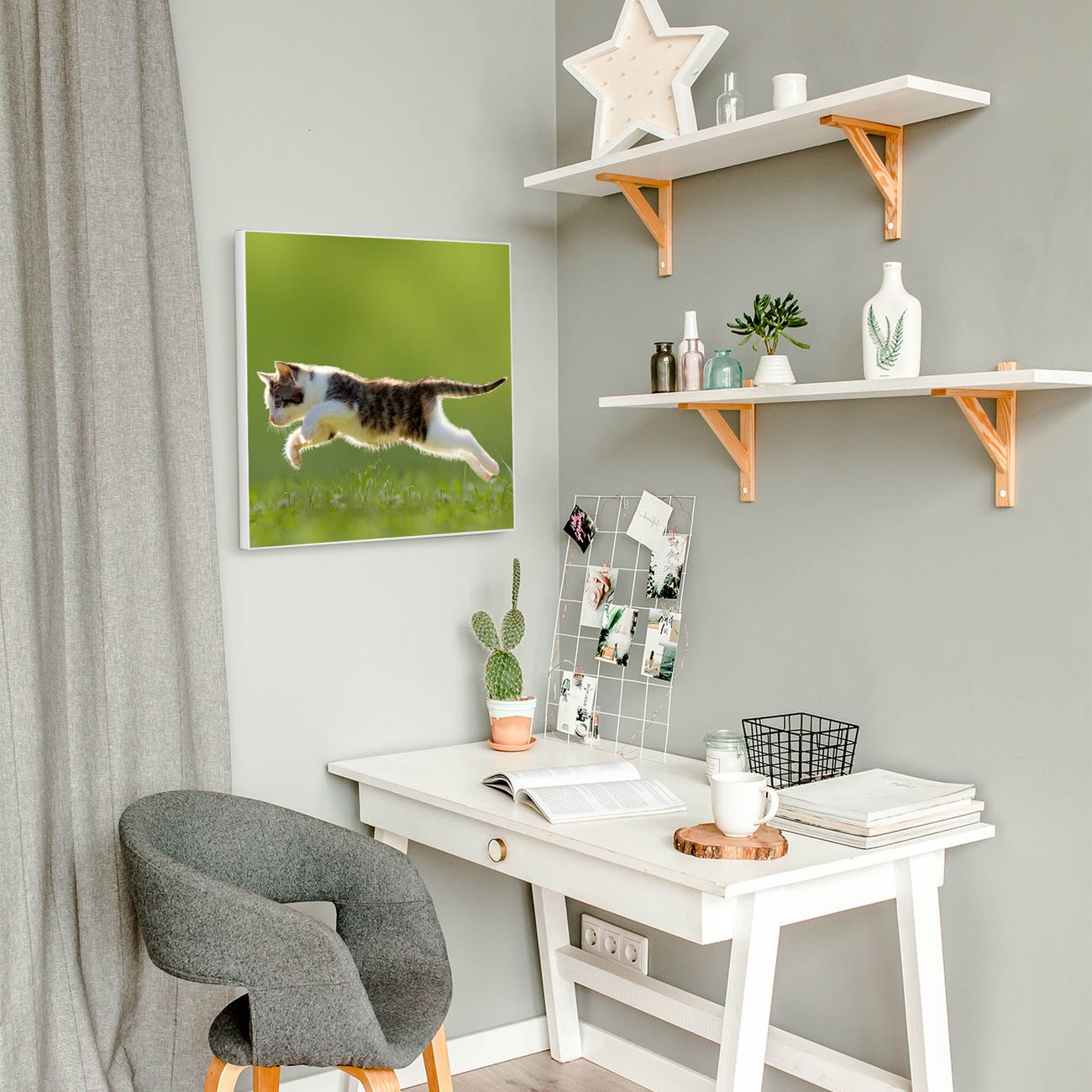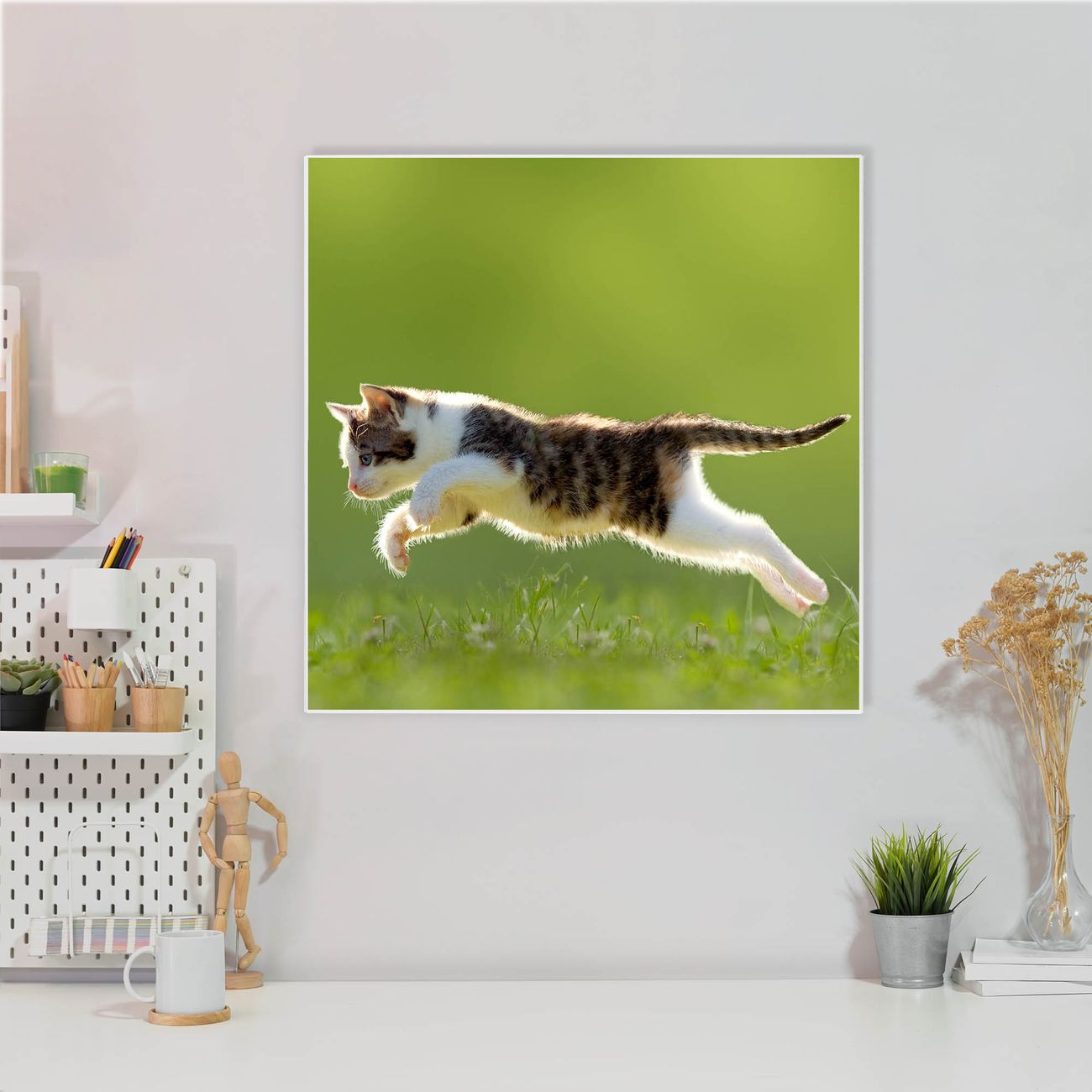 Die banjado Design Magnettafel mit Motiv Motiv Jagende Katze bringt Ordnung in Ihr Zettelchaos. Fotos, Termine, Notizen oder Rezepte lassen Sich hier stilvoll mit Magneten ordnen, Sie behalten alles im Blick. An der Pinnwand halten alle handelsüblichen Magnete. Mit dieser Pinnwand aus Metall haben Sie auch ohne Notizen und Magnete ein schönes Dekoelement. Das Quadratische Format bietet Ihnen ausreichend Platz um alle wichtigen Informationen im Blick zu behalten.