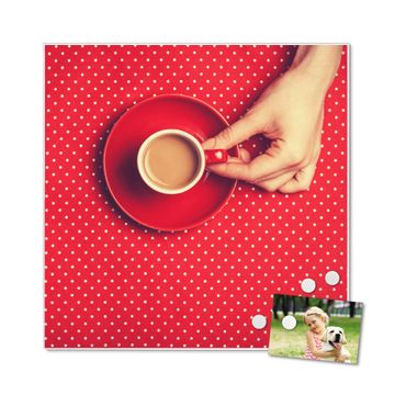 Die banjado Design Magnettafel mit Motiv Motiv Kaffee Rot Weiss bringt Ordnung in Ihr Zettelchaos. Fotos, Termine, Notizen oder Rezepte lassen Sich hier stilvoll mit Magneten ordnen, Sie behalten alles im Blick. An der Pinnwand halten alle handelsüblichen Magnete. Mit dieser Pinnwand aus Metall haben Sie auch ohne Notizen und Magnete ein schönes Dekoelement. Das Quadratische Format bietet Ihnen ausreichend Platz um alle wichtigen Informationen im Blick zu behalten.