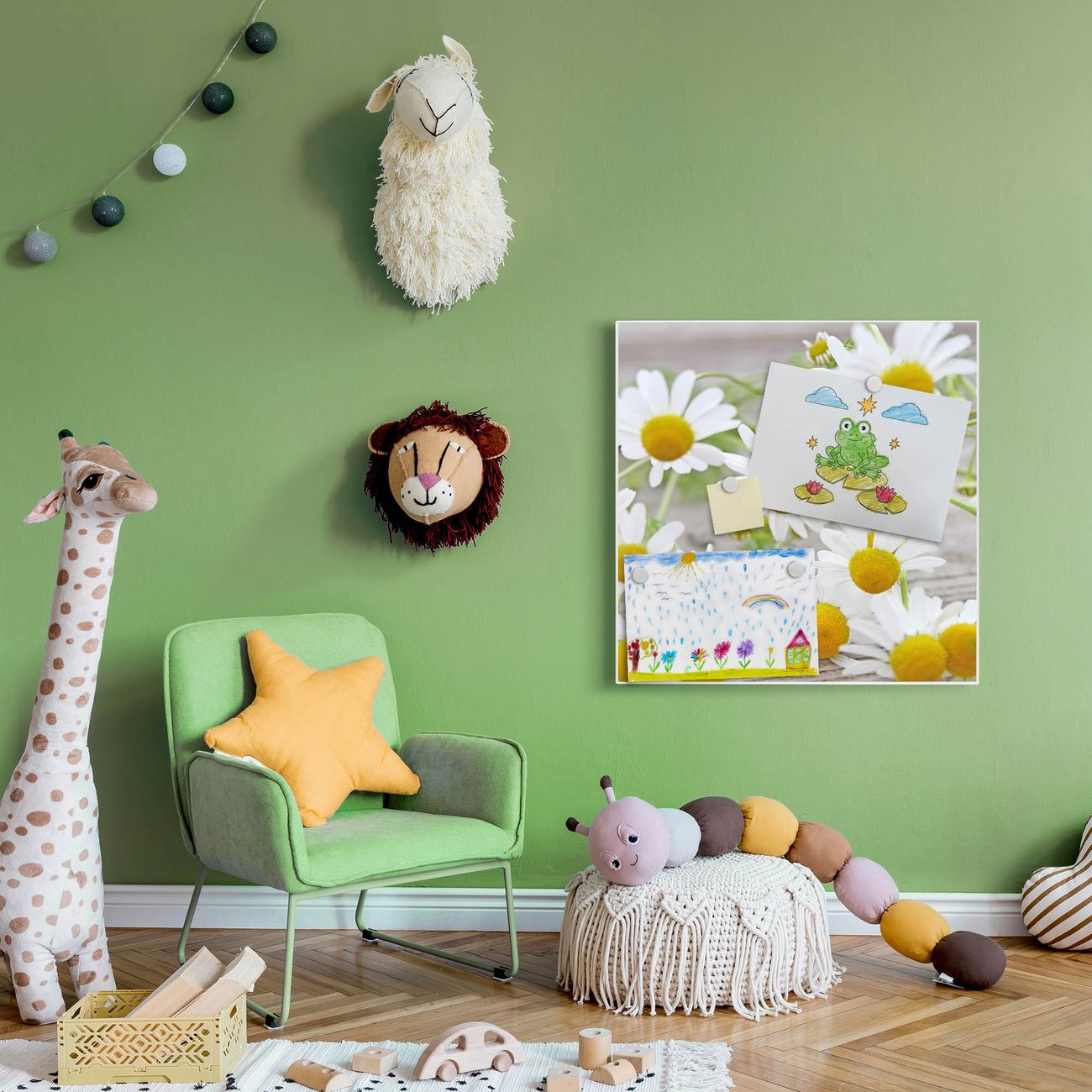 Die banjado Design Magnettafel mit Motiv Motiv Kamillenblüten bringt Ordnung in Ihr Zettelchaos. Fotos, Termine, Notizen oder Rezepte lassen Sich hier stilvoll mit Magneten ordnen, Sie behalten alles im Blick. An der Pinnwand halten alle handelsüblichen Magnete. Mit dieser Pinnwand aus Metall haben Sie auch ohne Notizen und Magnete ein schönes Dekoelement. Das Quadratische Format bietet Ihnen ausreichend Platz um alle wichtigen Informationen im Blick zu behalten.