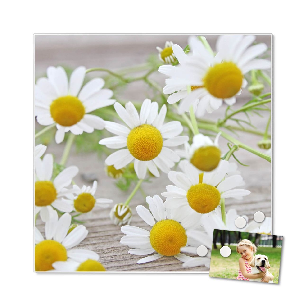 Stahl Magnettafel 50x50cm Kamillenblüten