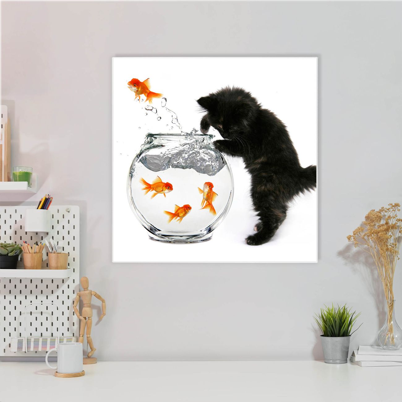Stahl Magnettafel 50x50cm Katze Und Fisch