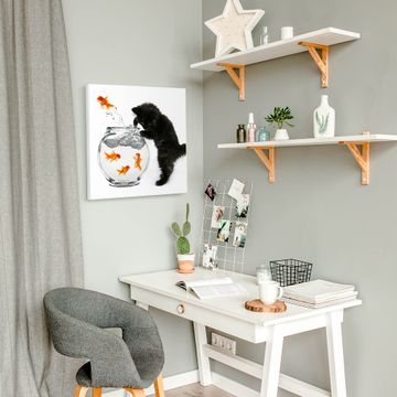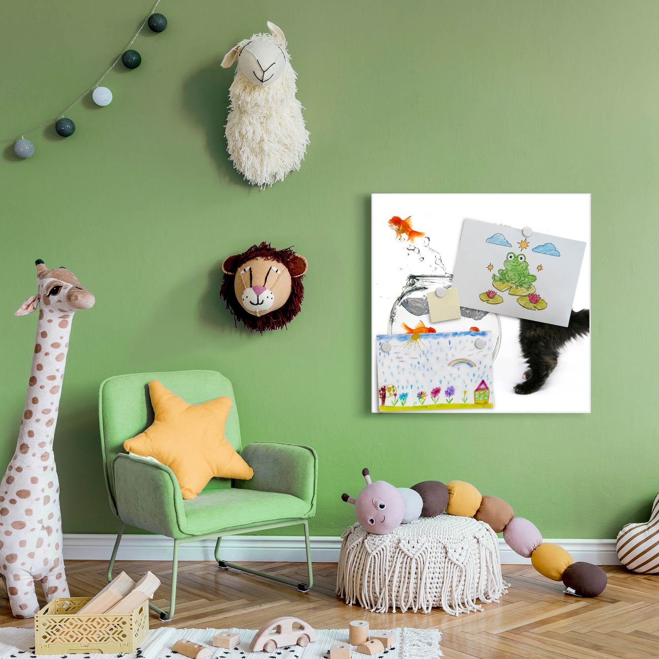 Die banjado Design Magnettafel mit Motiv Motiv Katze Und Fisch bringt Ordnung in Ihr Zettelchaos. Fotos, Termine, Notizen oder Rezepte lassen Sich hier stilvoll mit Magneten ordnen, Sie behalten alles im Blick. An der Pinnwand halten alle handelsüblichen Magnete. Mit dieser Pinnwand aus Metall haben Sie auch ohne Notizen und Magnete ein schönes Dekoelement. Das Quadratische Format bietet Ihnen ausreichend Platz um alle wichtigen Informationen im Blick zu behalten.